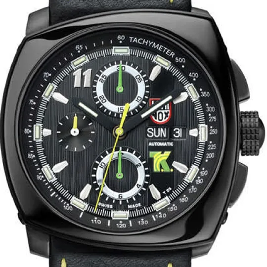 Todos los modelos cuentan con la firma de Tony Kanaan, que se “funde” a la caja de acero inoxidable 316L con tratamiento PVD negro e incrustaciones de fibra de carbono en los laterales. Kanaan está conduciendo el coche # 11 de KV Racing Technology y este modelo también cuenta con su logotipo, número, y colores tradicionales. La correa de cuero negro grueso con pespunte en contraste completa el look racing de la pieza. Hermético hasta 100 metros, cuenta con tecnología Luminox Light “Always Visible”, un sistema patentado de microtubos de gas con alimentación propia, montados en las manos y los marcadores de los relojes, que brillan de forma continua durante un máximo de 25 años.
