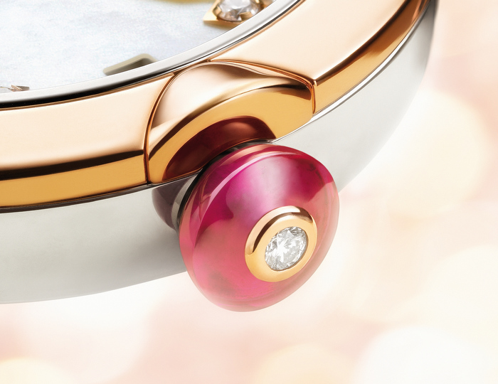 Pero los detalles de esta línea no paran ahí, la corona luce un corte cabujón en noble púrpura y un exquisito diamante, el brillante recordatorio de la belleza espiritual de la mujer.