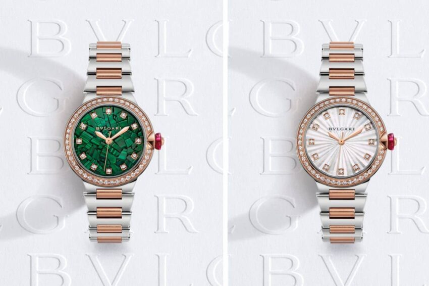 Bulgari ha logrado dominar la luz en el Lucea, sus líneas están inspiradas en la joyería. Pero más allá de su esfera engastada con diamantes, Bulgari presenta nuevas facetas de la personalidad de Lucea a través del arte del Intarsio de nácar y la incrustación de malaquita.