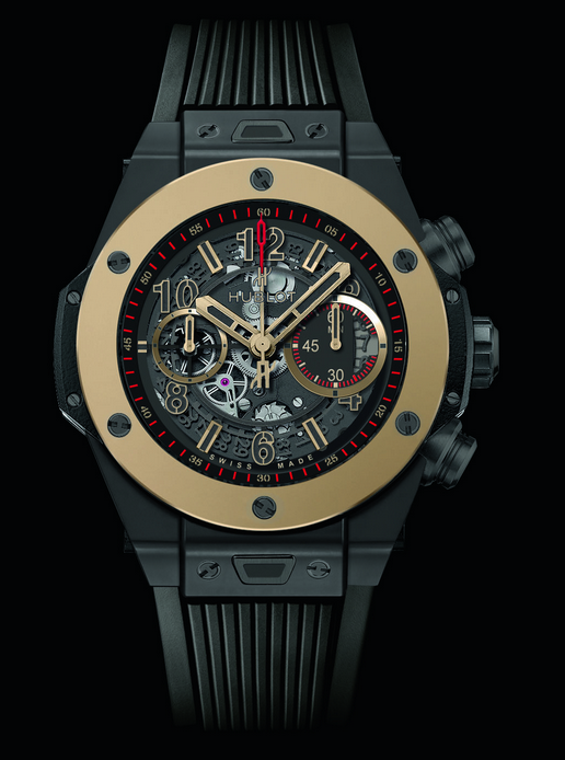 Este material se encuentra escoltado por el arte de la fusión, mismo que es parte de la filosofía de HUBLOT, manufactura que desarrollara el caucho en sustitución del brazalete, pero que abrazara los materiales preciosos confiriéndoles prestaciones deportivas. Así pues, el Big Bang es un modelo icónico para la marca, y es por ello que dentro de la producción regular HUBLOT anuncia la introducción del Big Bang Unico Magic Gold, un reloj con bisel de oro resistente al grado tal, que solo podrá ser manipulado por un diamante.