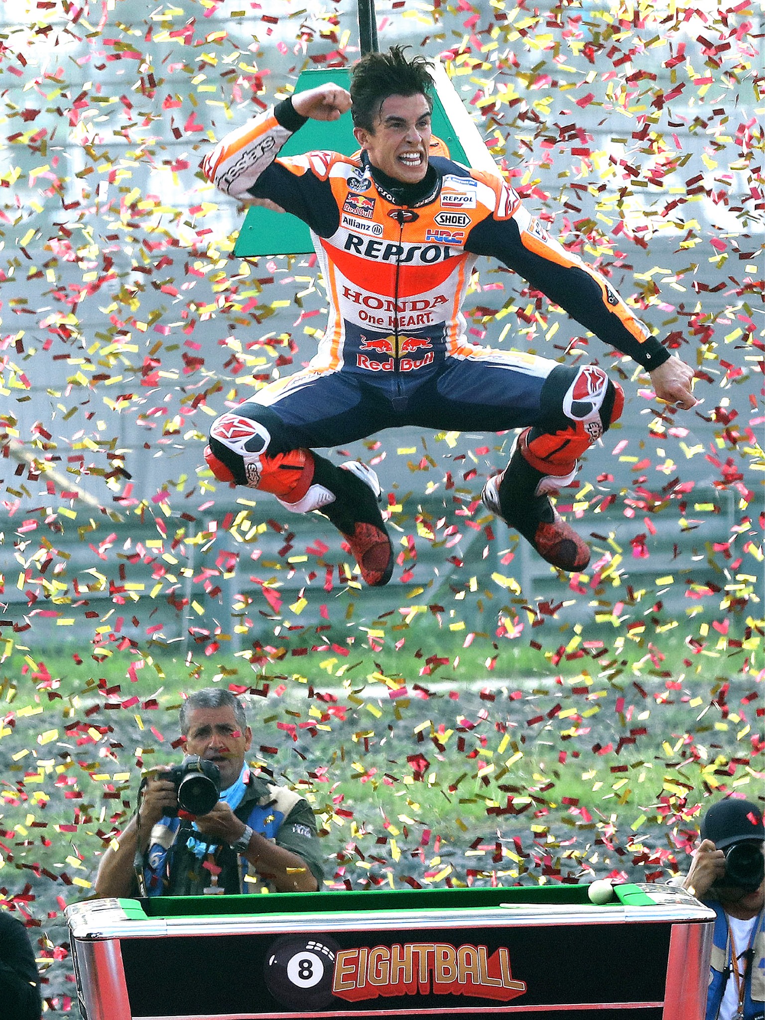 Sólo por debajo de Giacomo Agostini (15) y Valentino Rossi, quien ha coronado 7 ocasiones en la MotoGP y 9 totales. El piloto catalán de 26 años cuenta con todas las cartas para seguir sumando títulos.
