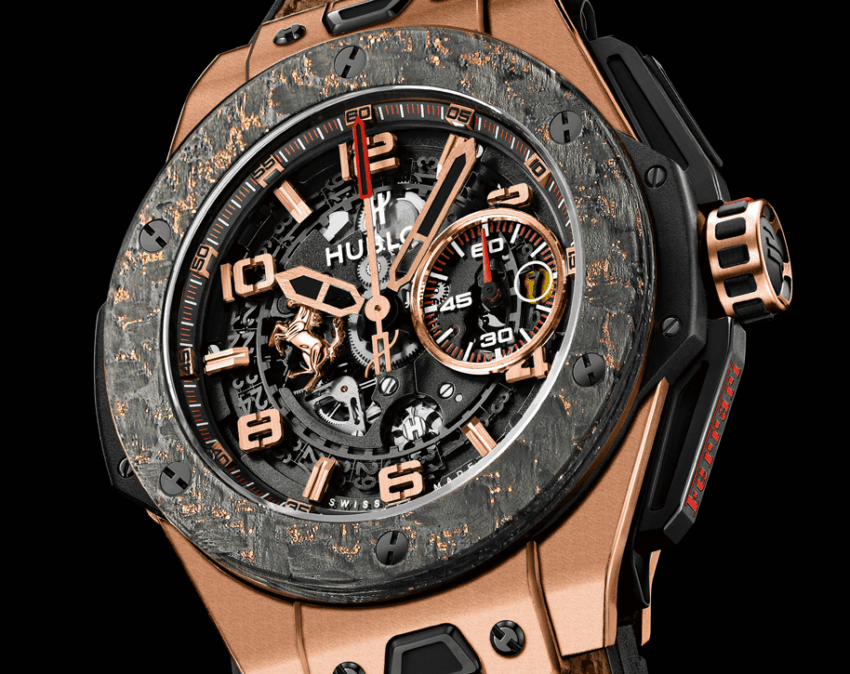 Finalmente destacamos la presencia de las ediciones Big Bang Ferrari Carbon, que fusiona en el bisel a la cerámica con el oro y a los bellísimos Ferrari Speciale, que se inspiran en un tipo de vehículo reducido en peso y amplificado en prestaciones enfocado para la pista, además de destacar la nueva edición Big Bang Ferrari México, la cual estará disponible a razón de 25 y 50 piezas de edición limitada en caja de 45 mm de King Gold u titanio con bisel de fibra de carbón color verde, y “motorizadas” por el calibre de manufactura HUB 1241 Unico.