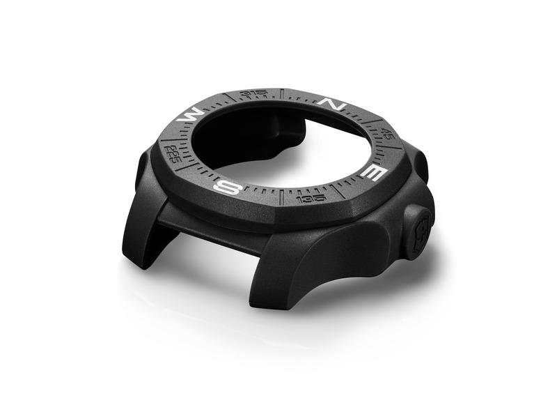 Está inspirado en las carcasas de teléfono móvil, y se desarrolló para proteger y destacar la personalidad del reloj que, si bien es prácticamente indestructible, el acero puede llegar a rayarse en situaciones de outdoor. Con él, podrá asegurarse que el lienzo de acero de la caja permanecerá como verdadero espejo sin importar la actividad que realice al recubrirlo con el bumper, graduado con los puntos cardinales a fin de funcionar como brújula.