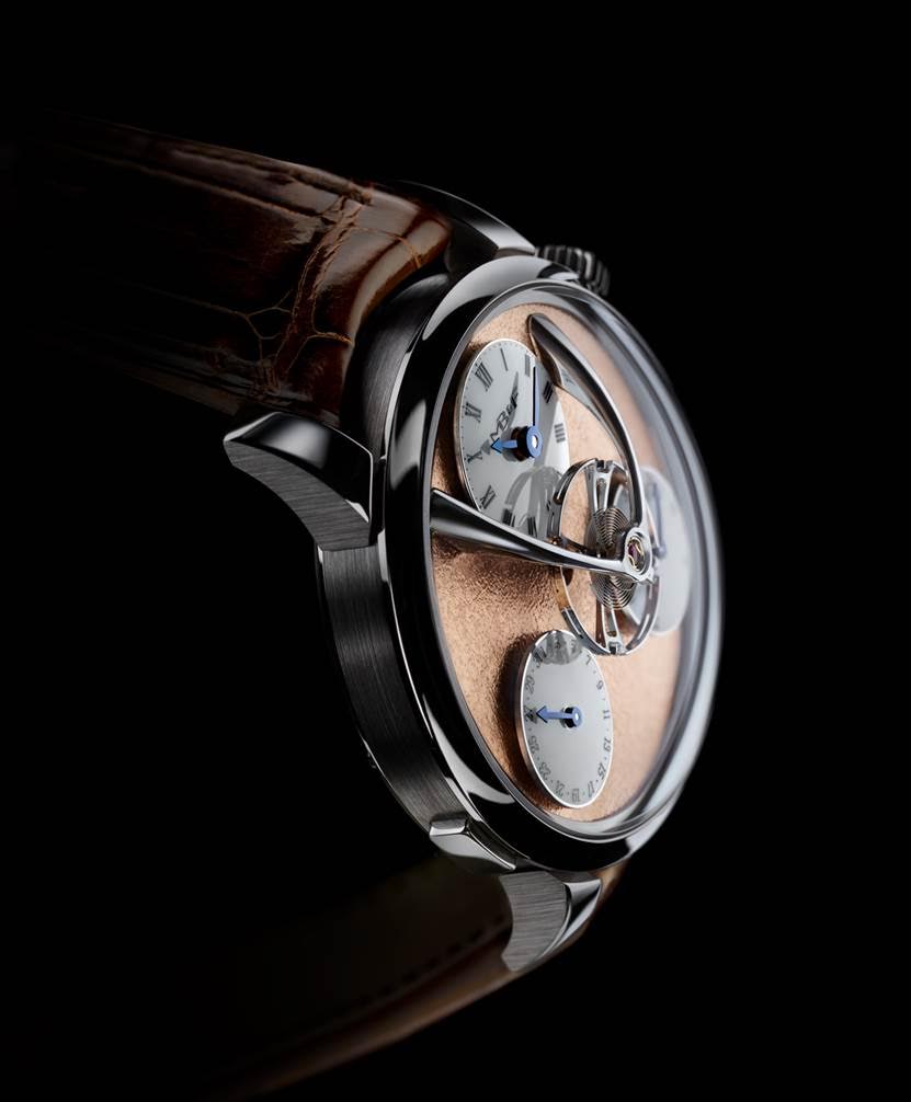 Es así que el siguiente capítulo de las máquinas horológicas de MB&F, llevan aún más allá la espectacularidad de este volante suspendido, logrando “dividir” completamente al elemento que le brinda el impulso necesario para vibrar a 18,000 alternancias por hora: el escape.