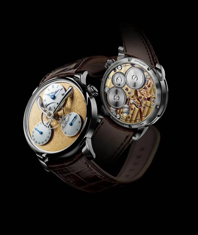 Los relojes antiguos que lucían este tipo de acabado empleaban baños de ácido para lograr dicho efecto, pero los métodos modernos que reproducen el escarchado consisten en bruñir manualmente la superficie de metal con un cepillo metálico. La LM Split Escapement es una celebración de esta técnica, realizada íntegramente a mano en las 72 piezas que conforman las ediciones de lanzamiento.