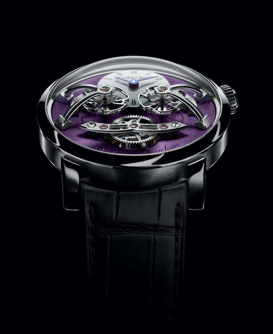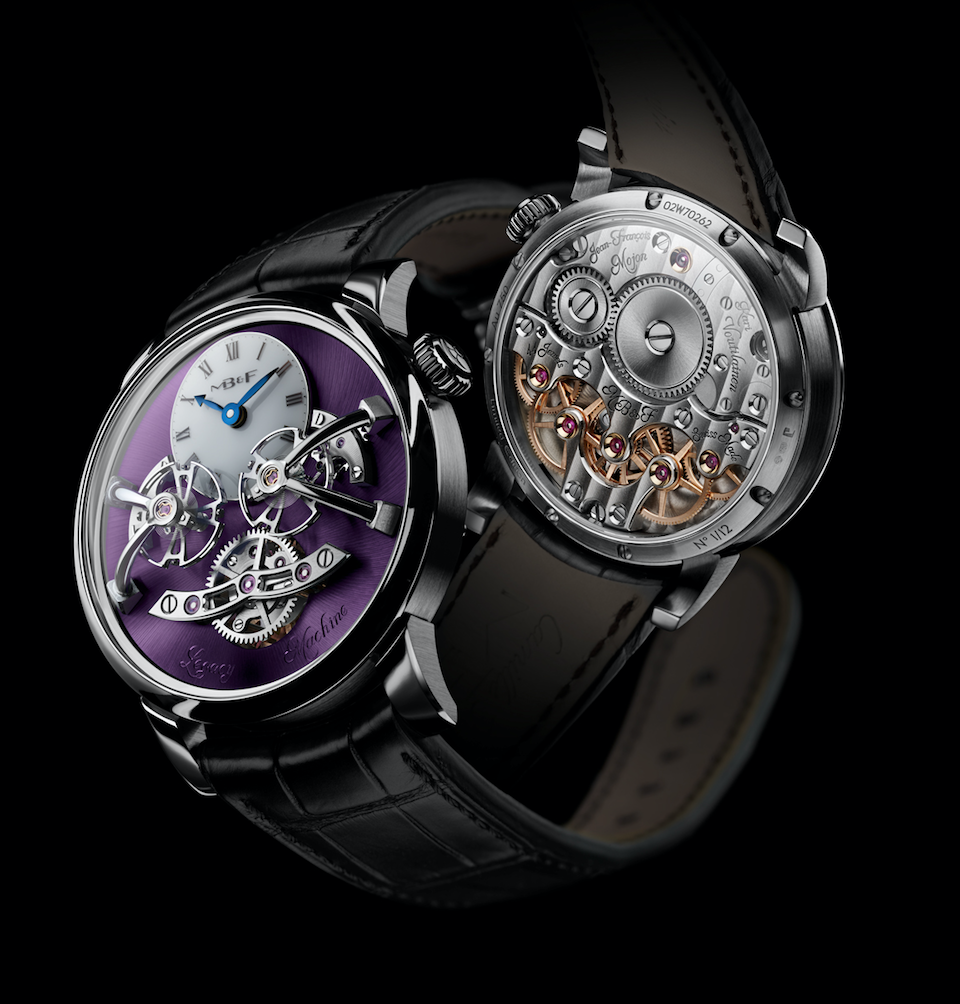 El concepto nace de la inspiración en un reloj de Philippe Dufour que contaba con un mecanismo de regulador legislado por un diferencial conectado a un exclusivo tren de engranajes, por lo que buscó a sus amigos y relojeros maestros Jean-François Mojon y Kari Voutilainen. Y fue así como al día de hoy llega el nuevo integrante de color púrpura MB&F.