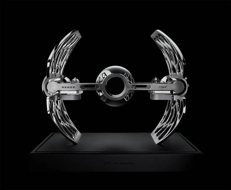 En colaboración con Reuge y JMC Lutherie, MB&F se inspira en la saga TIE-Fighters de Star Wars, por lo que los dos cilindros musicales tienen la posibilidad de tocar el tema central de James Bond, Mission Impossible, The Godfather, “Merry Christmas Mr. Lawrence” y “The Persuaders”.