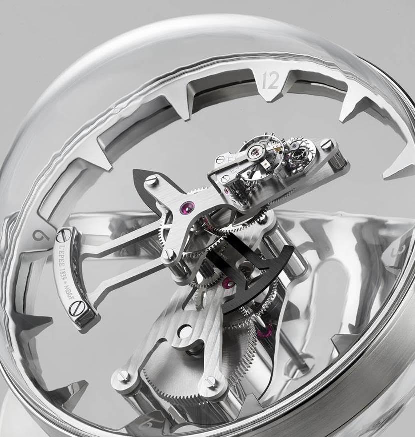 En cuanto a la mecánica, destaca su movimiento cuyo elemento más destacado es la “carátula” transparente de Octopod que está suspendida como en los cronómetros de marina tradicionales, en los que el sistema de cardán contrarrestaba los efectos de la oscilación de las embarcaciones. En el caso del Octopod, el cardán permite que la burbuja gire con facilidad, de modo que la hora sea perfectamente legible, independientemente del ángulo o la altura.