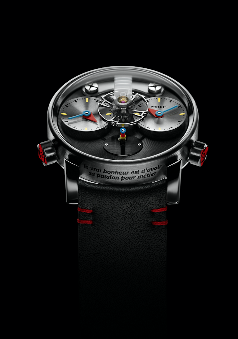 La pasión y ventura por innovar en la relojería, son los motores que han impulsado al diseñador Alain Silberstein en seguir creando diseños extremadamente únicos y llenos de color. La filosofía y la dedicación del artista se plasman en el reloj Legacy Machine No.1 por medio de una cita del novelista francés Gustave Flaubert: Le vrai bonheur est d’avoir sa passion pour métier. Que hace referencia a la verdadera felicidad del trabajo con pasión, un ingrediente que mueve a la creación de MB&F y Alain Silverstein.