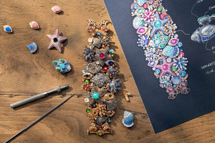 El estudio de diseño, junto con los hábiles artesanos de la marca y los expertos en gemas preciosas de color, dieron vida a dos jardines submarinos donde la estructura flexible, junto con una variedad de tesoros escondidos y arrecifes vivos transmiten una sensación de vitalidad y alegría.
