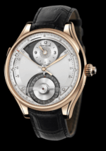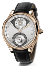 Inspirados en el arte de la manufactura autómata y artesanal, los relojeros del Jura suizo construyeron un nuevo capítulo en la relojería: la carátula del reloj muestra las horas, minutos y la fecha, mientras que un botón en el borde izquierdo de la caja se acciona para transformar el dial en una nueva carátula, deportiva y totalmente funcional. Adicionalmente, el dispositivo activa un sofisticado proceso mecánico que transforma la carátula que indica la hora clásica en un cronógrafo con ésta función, la de medir tiempos cortos.