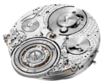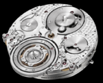 Las claves: la transmisión de la energía se libera al crono tal como si se tratara de un repetidor de minutos (situada a las 10 h); el segundo paso es la transformación de la carátula, que inmediatamente correrá a exhibir los totalizadores del cronógrafo y viceversa; el tercer paso es la transformación en sí, que ocurre “mágicamente” y se está listo para lanzar al crono y a su trotadora en posición central, que además utiliza un mecanismo monopulsante y cuenta con una rueda de pilares.