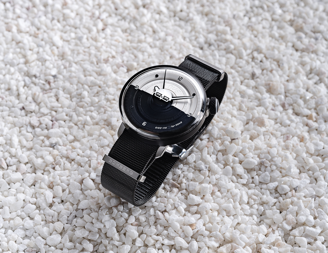 Se trata de una pieza que fue discretamente intervenida por el artista, quien decidió tomar de base la colección BB-01 y teñirla de blanco con negro, una escala monocromática que invita a pensar en la dualidad de la vida: no hay medias tintas.