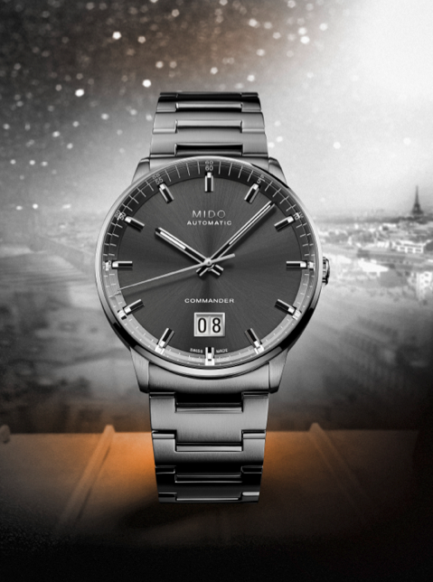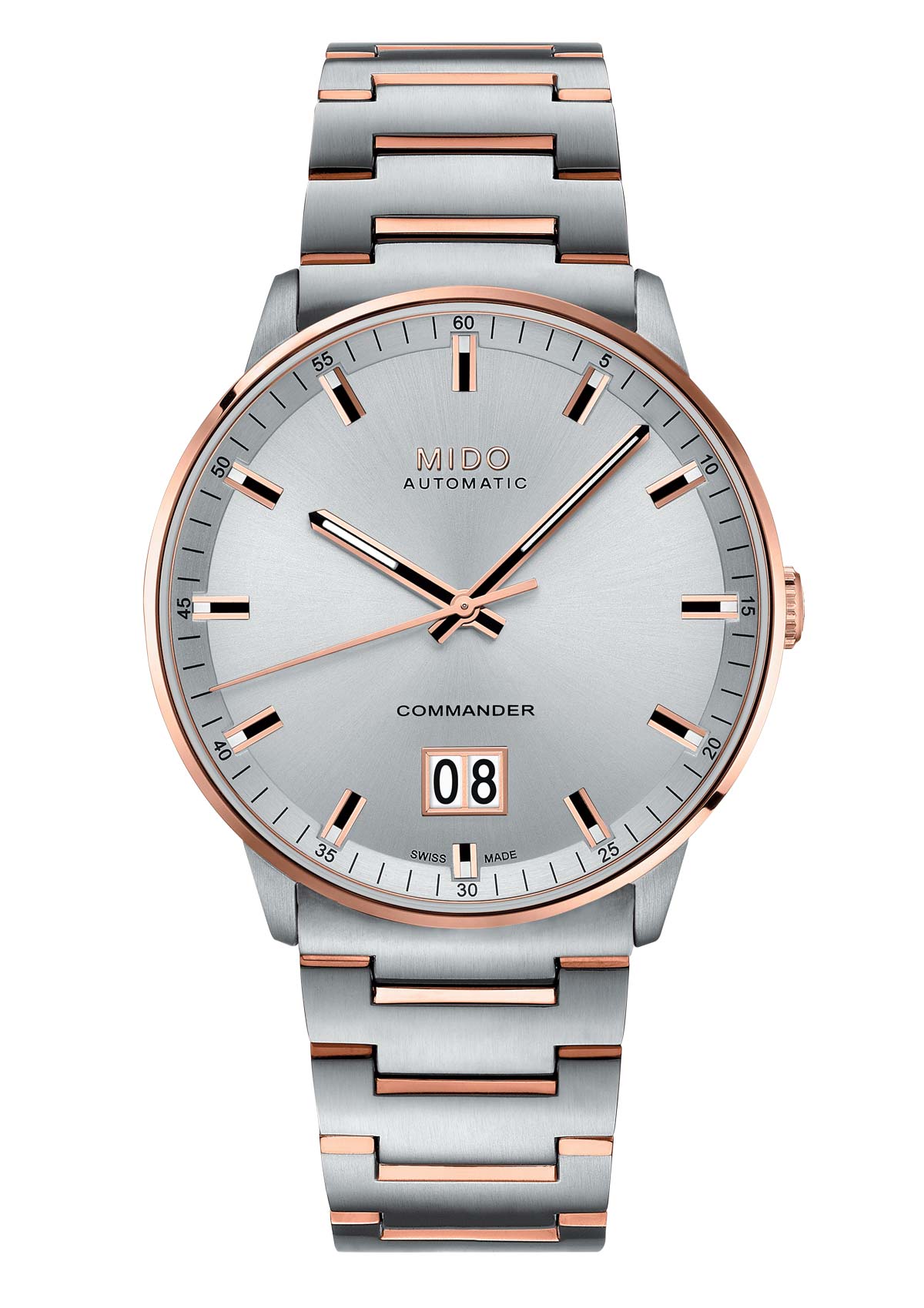 Ya en su caja, MIDO Commander Big Date luce 4 ejecuciones diferentes, fondo transparente de cristal de zafiro y es hermético hasta los 50 metros de profundidad. Disponible con carátula plateada o antracita, se abraza al pulso mediante un brazalete de acero inoxidable totalmente atemporal y elegante. Si lo prefiere puede optar por la referencia en combinación de acero con PVD oro rosa y dial plateado. Finalmente, una propuesta en caja de acero con PVD oro rosa y correa de becerro con acabado tipo cocodrilo también estará disponible.