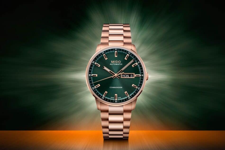 Mido reinventa el Commander Datoday con carátula verde, acabado en oro rosa y Calibre 80. Un reloj icónico que combina historia, precisión y estilo contemporáneo.