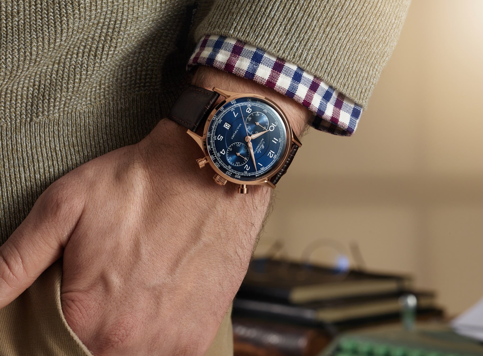 Al interior vibra el calibre 6o de la marca, básicamente el movimiento mecánico automático que la firma utiliza en todos sus cronógrafos, derivado del robusto ETA 7753, y que vibra a 4 Hz, entregando una autonomía de 60 horas. Luce desde el fondo de la pieza fabricado en cristal de zafiro, con todo y sus finos acabados perlage, tornillería azul y Côtes de Genève.