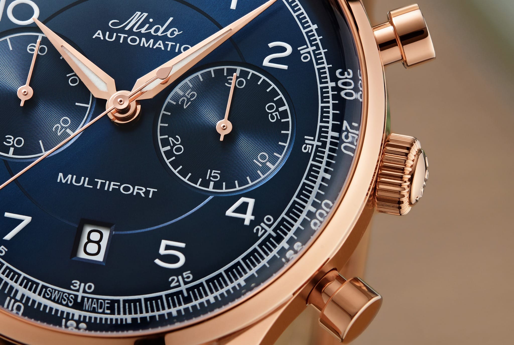 Mido Multifort Patrimony Chronograph sorprende por la elegancia y el estilo que presenta este cronógrafo dentro de la colección Multifort, en lo personal pienso que pudiera tratarse de un Belluna, pero la marca decidió recuperar los orígenes de Multifort y ofrecernos un crono decididamente vintage, ¡les quedó sensacional!