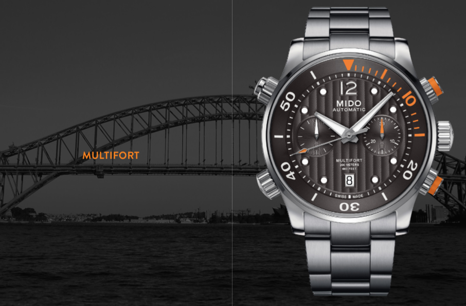 La colección se presentó en 1934, lo que sugiere un par de años después del Harbour Bridge de Sidney, sitio que sirve directamente de inspiración a este clásico de la horología y arquitectura suiza que se beneficia de un movimiento superdotado, es decir: mecánico automático con capacidad autónoma de hasta 60 horas de reserva de marcha, es decir un 40% más a la”cuerda” que presentan algunas otras piezas de relojería. Hoy su Côtes de Genève exhibido en la carátula, así como su estética poderosa destacada por los motivos color naranja y por sus cuatro pulsadores más la corona, hacen que esta pieza sea ideal para portar en actividades deportivas y de submarinismo, mientras que su hermeticidad garantizada de hasta 200 metros, o presión equivalente, protegerá al Multifort contra cualquier inclemencia natural.