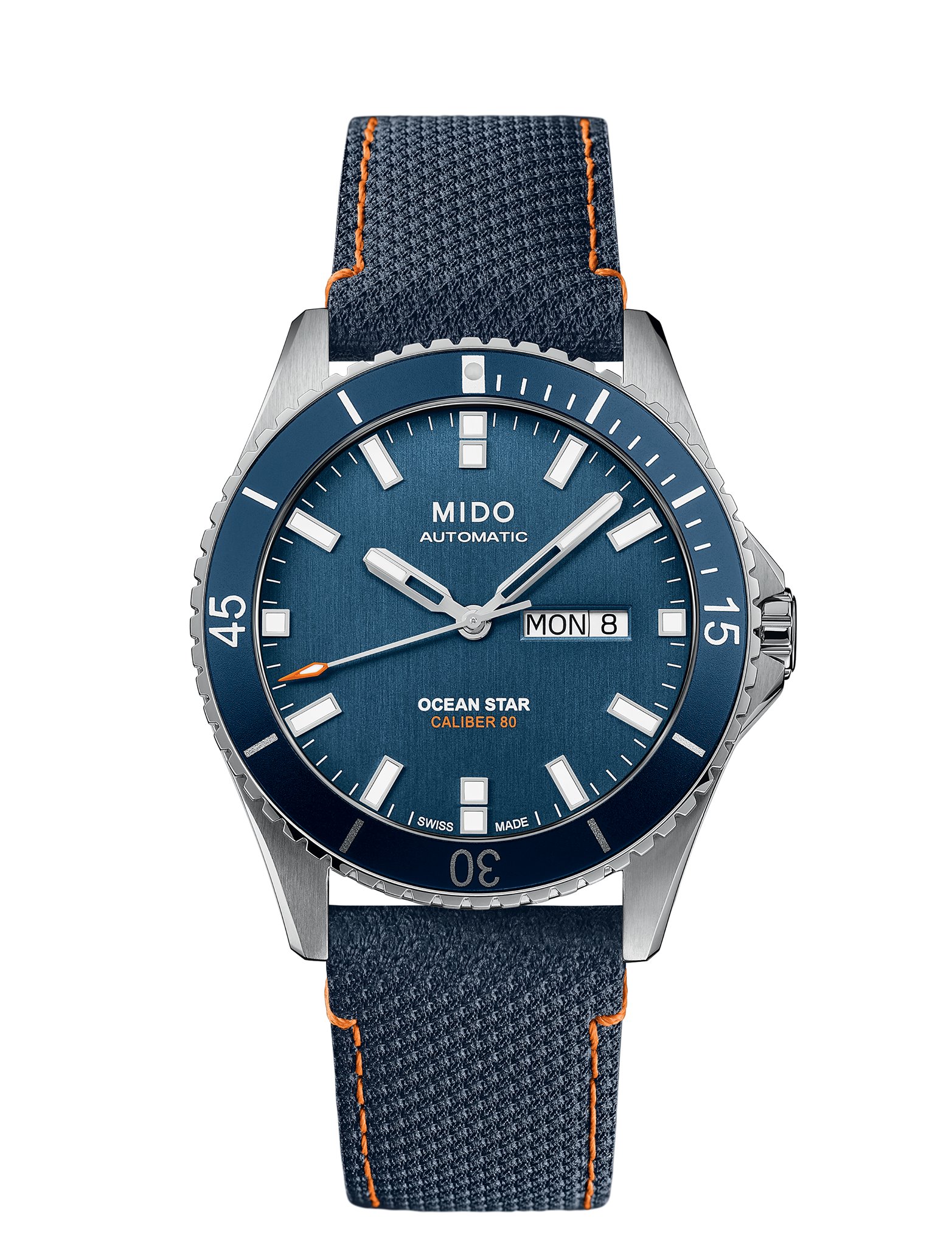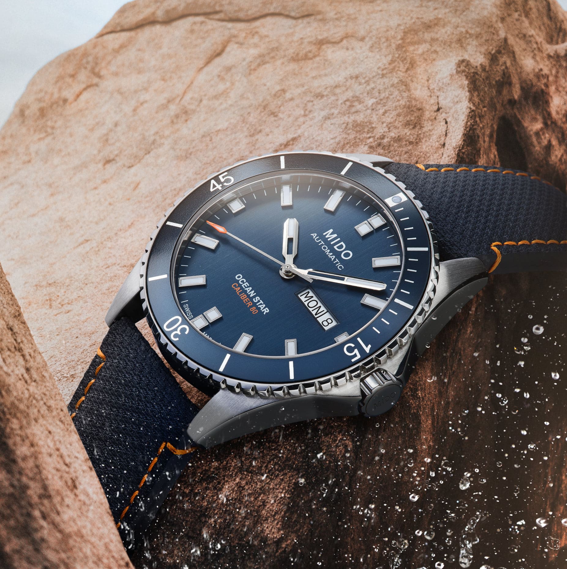 Basado en los valores que le vinculan a este deporte: estética, rendimiento y precisión, Mido presenta el nuevo reloj Ocean Star 200 Red Bull Cliff Diving. Por ello el reloj debe ser bello: luce una carátula azul con cepillado vertical, índices aplicados pulidos, agujas con corte diamante y segundero destacado en color naranja; robusto, goza de una hermeticidad a prueba de 200 metros, ideal para soportar las desaceleraciones súbitas al ingresar al agua. Integra el calibre 80 de la marca, un movimiento a 3 Hz con 80 horas de autonomía, que es ajustado en 3 posiciones. Finalmente, la costura de la correa de tejido sintético azul, que es particularmente resistente, brinda un toque sport a la pieza.