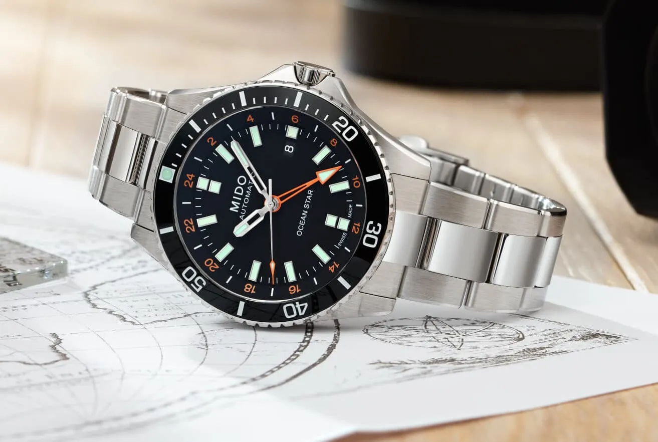 Mido Ocean Star GMT celebra la práctica del buceo profesional bajo una estampa de originalidad y ajustándose al color del año en la relojería. Sin embargo, porque rara vez buceas en tu huso horario, añade un GMT para la funcionalidad.