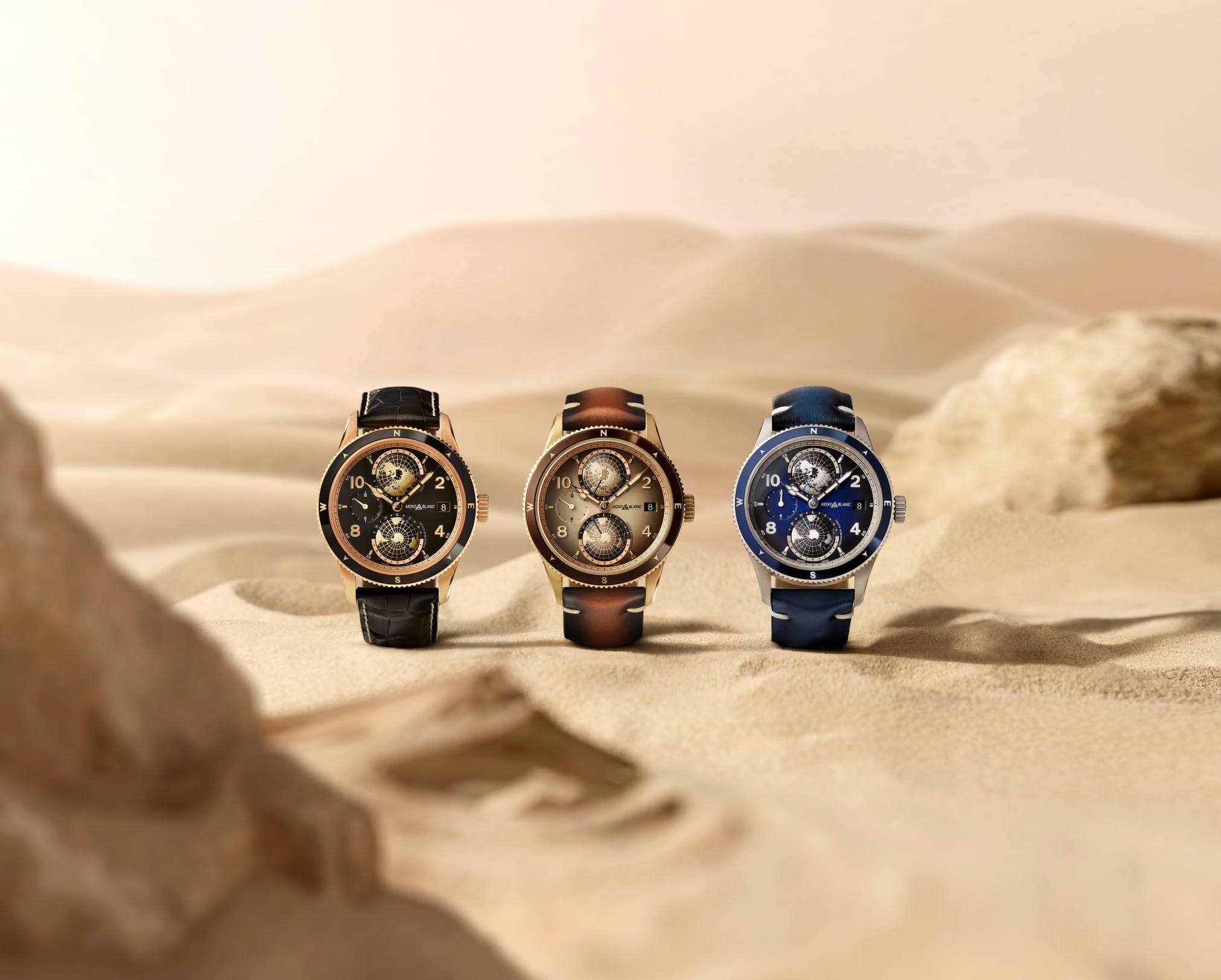 Montblanc 1858 Geosphere Limited Edition 1858 representa la inspiración en el desierto y la evolución de este modelo, que fue presentado en 2018 y ha evolucionado desde entonces: caja de bronce con estética en negro y beige en 2018; caja de bronce con estética verde en 2019; caja de titanio y estética azul en 2020…