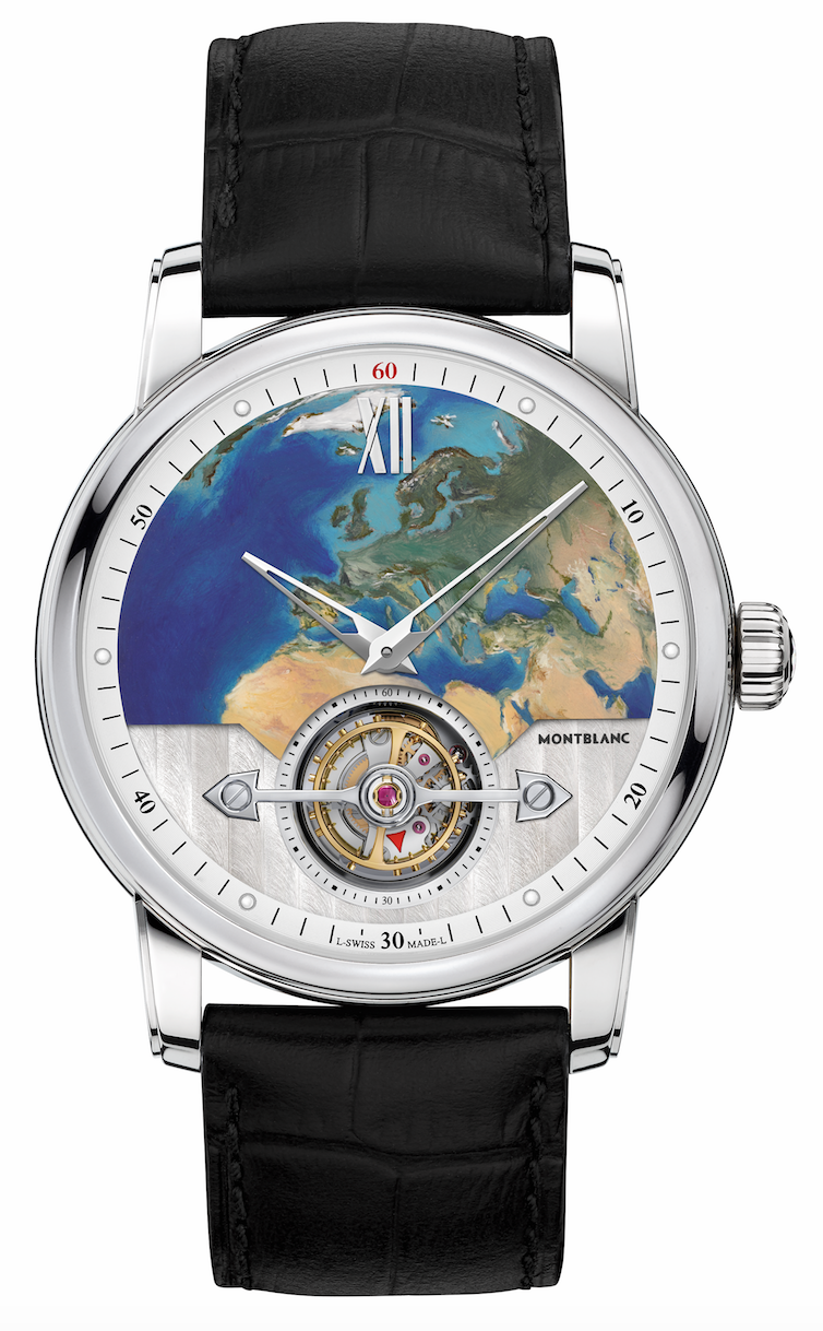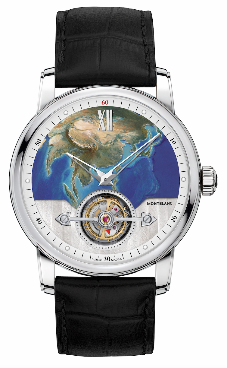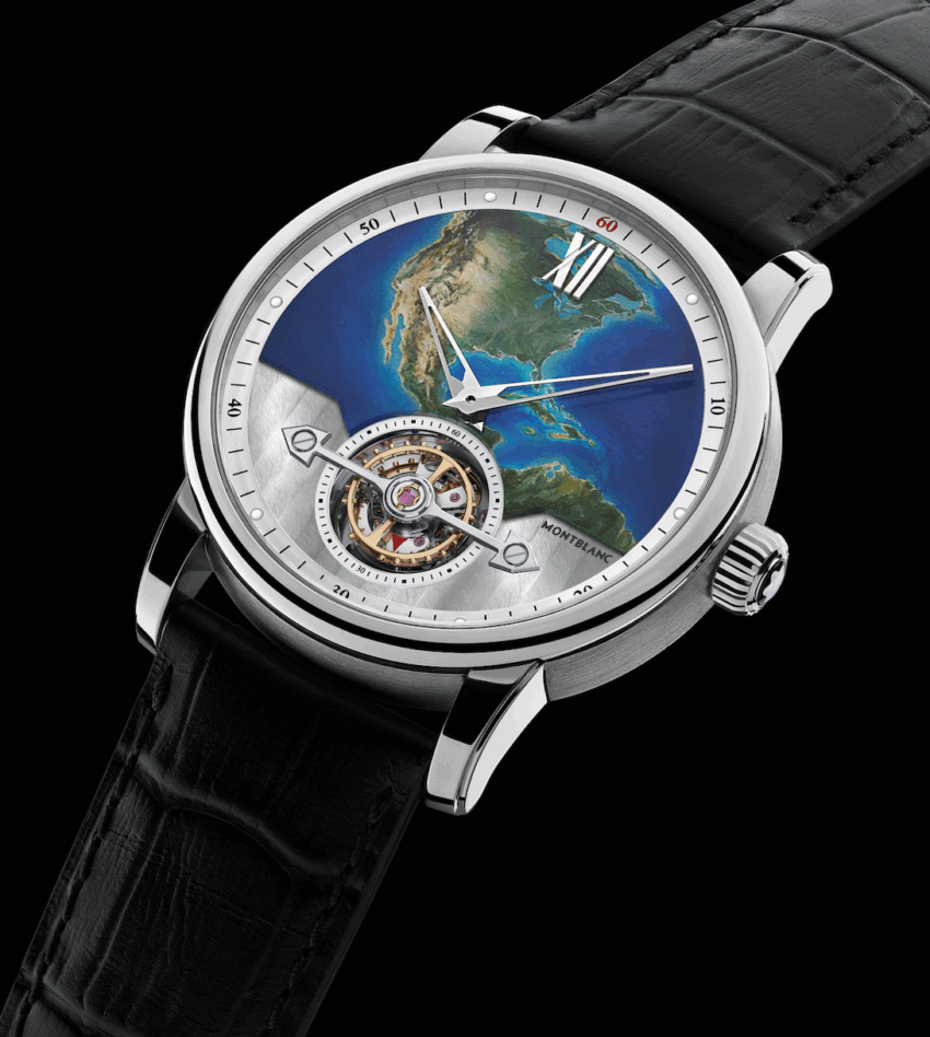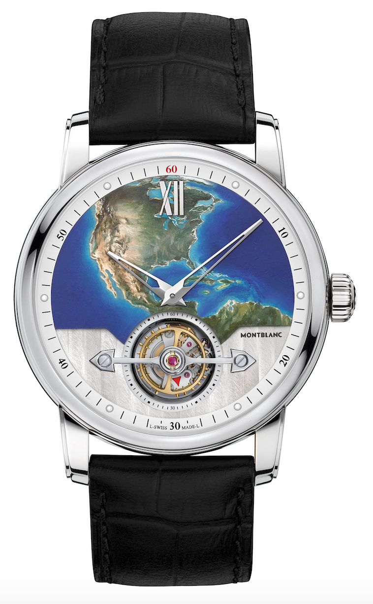 Cada uno de los tres relojes sigue los potentes y elegantes códigos de diseño de la Maison, ahora con pinturas en miniatura que representan el mapa de los continentes de América del Norte, Asia y Europa en la carátula. Cada una de las 110 piezas es totalmente única, ya que al estar pintados a mano, ningún mapa es igual al otro. Su baño en rodio y agujas tipo ‘esqueleto’ maximizan la visibilidad del mapa y, para hacer más sencilla la lectura, se incorpora una fina escala de minutos en el borde con un ‘60’ en rojo a las 12h.