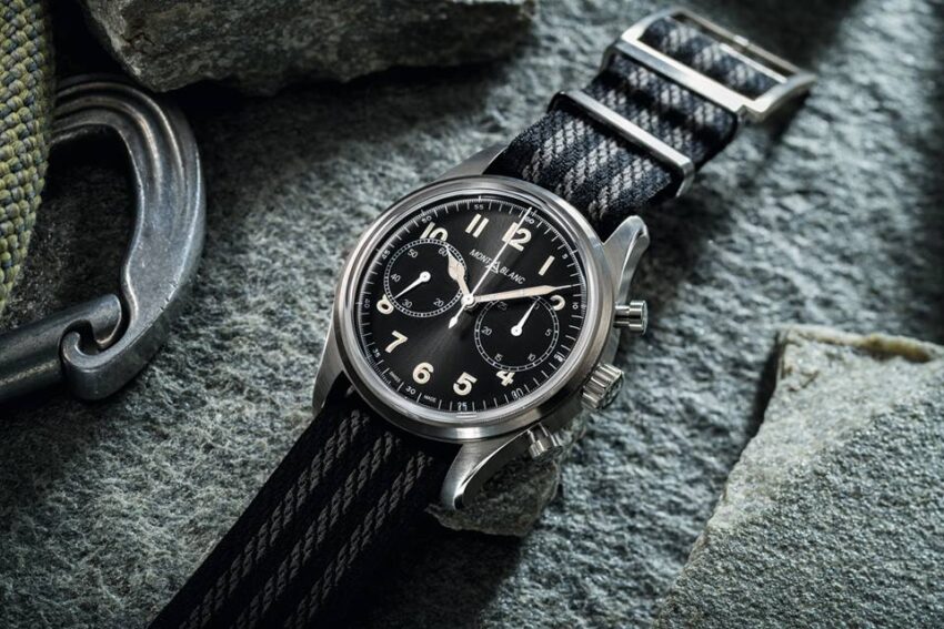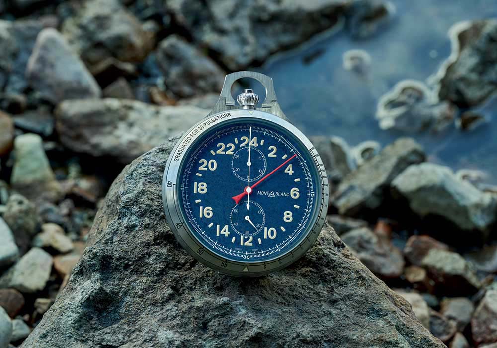 Combina una fuerte estética vintage con la función de cronógrafo. Este modelo está disponible con caja de acero o bronce. La caja de 42 mm presenta acabados pulidos y satinados para un mayor refinamiento y cuenta con un cristal de zafiro abombado, destacando la robustez y el look vintage del reloj. Para el modelo de bronce, el fondo de la caja se presenta en titanio recubierto en bronce para evitar alergias. El fondo ha sido grabado con la emblemática montaña Mont Blanc, una brújula y dos piolets de hielo cruzados, como un guiño al espíritu del montañismo de exploración.