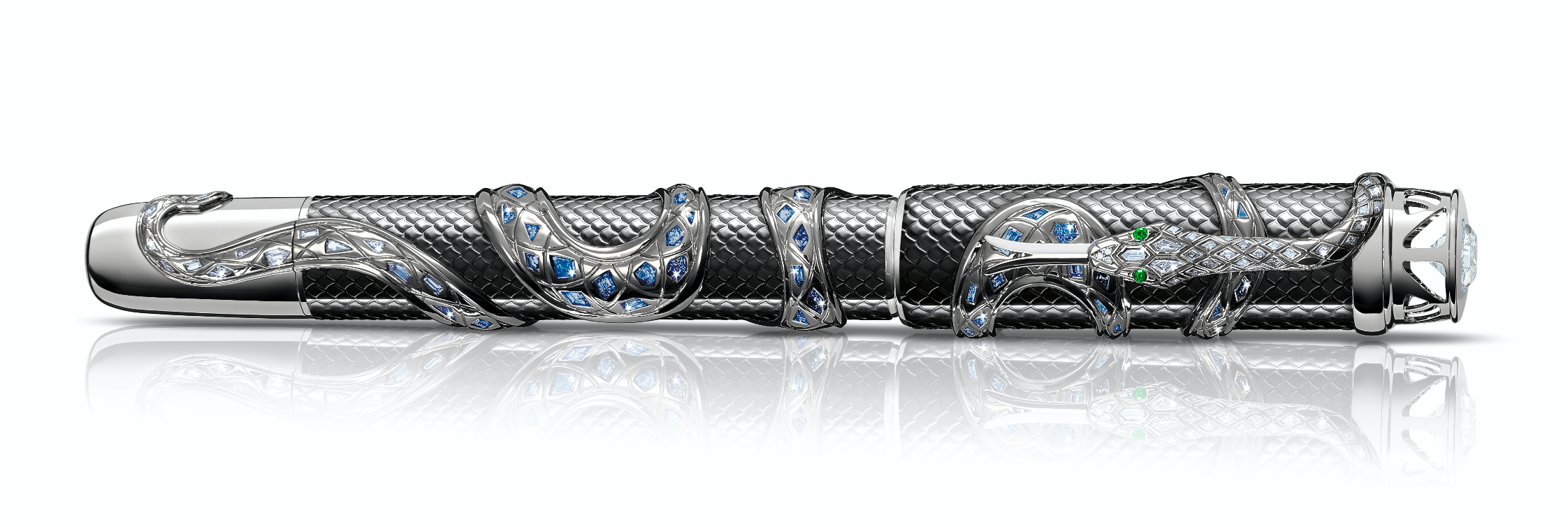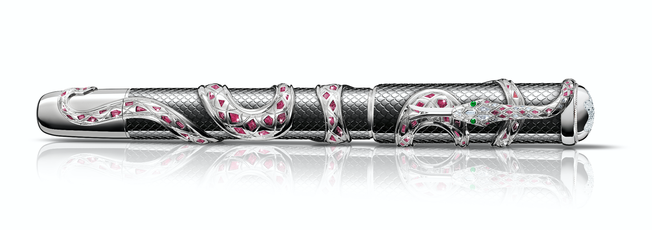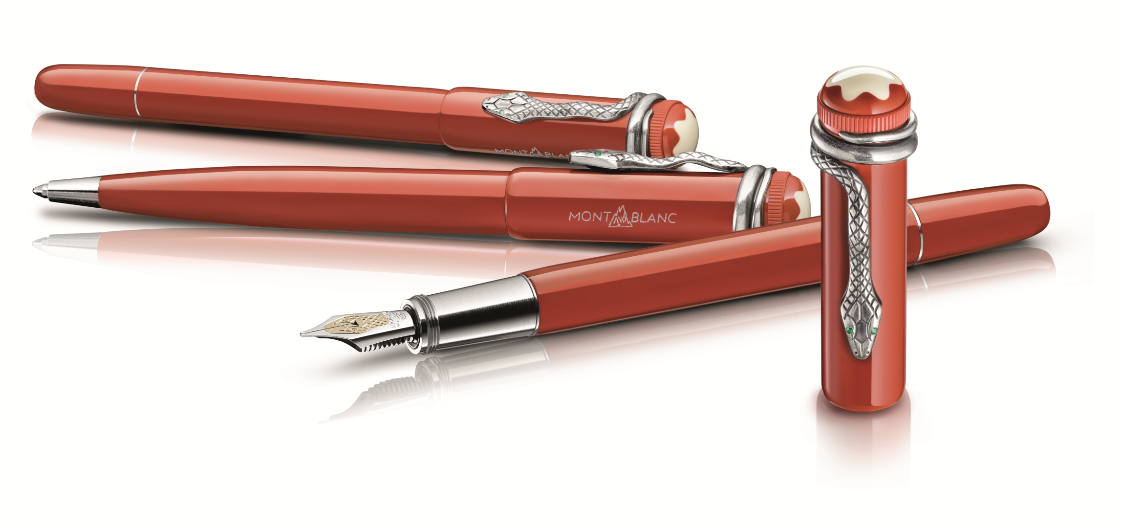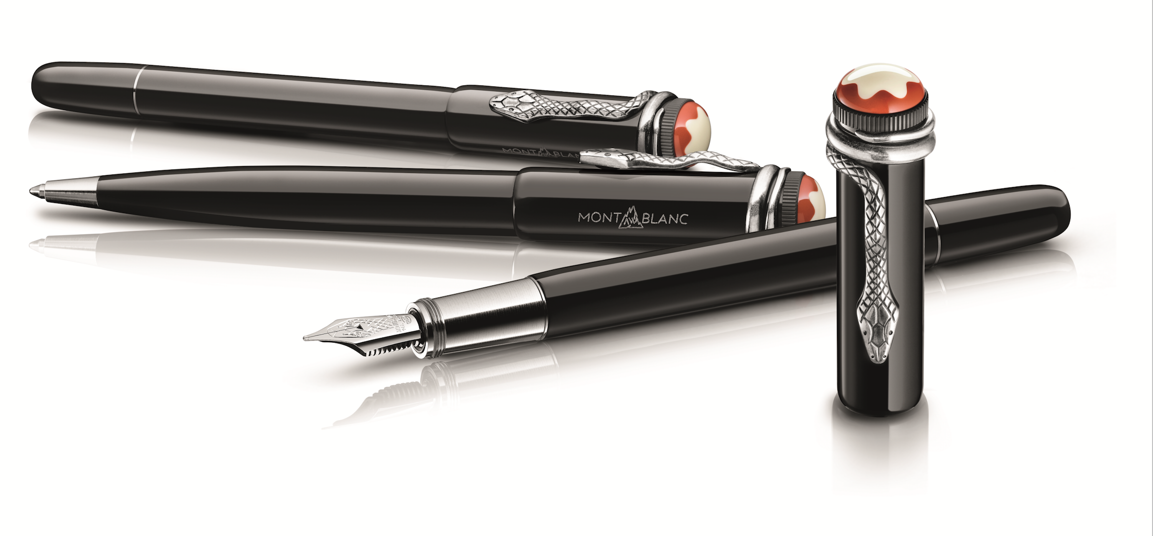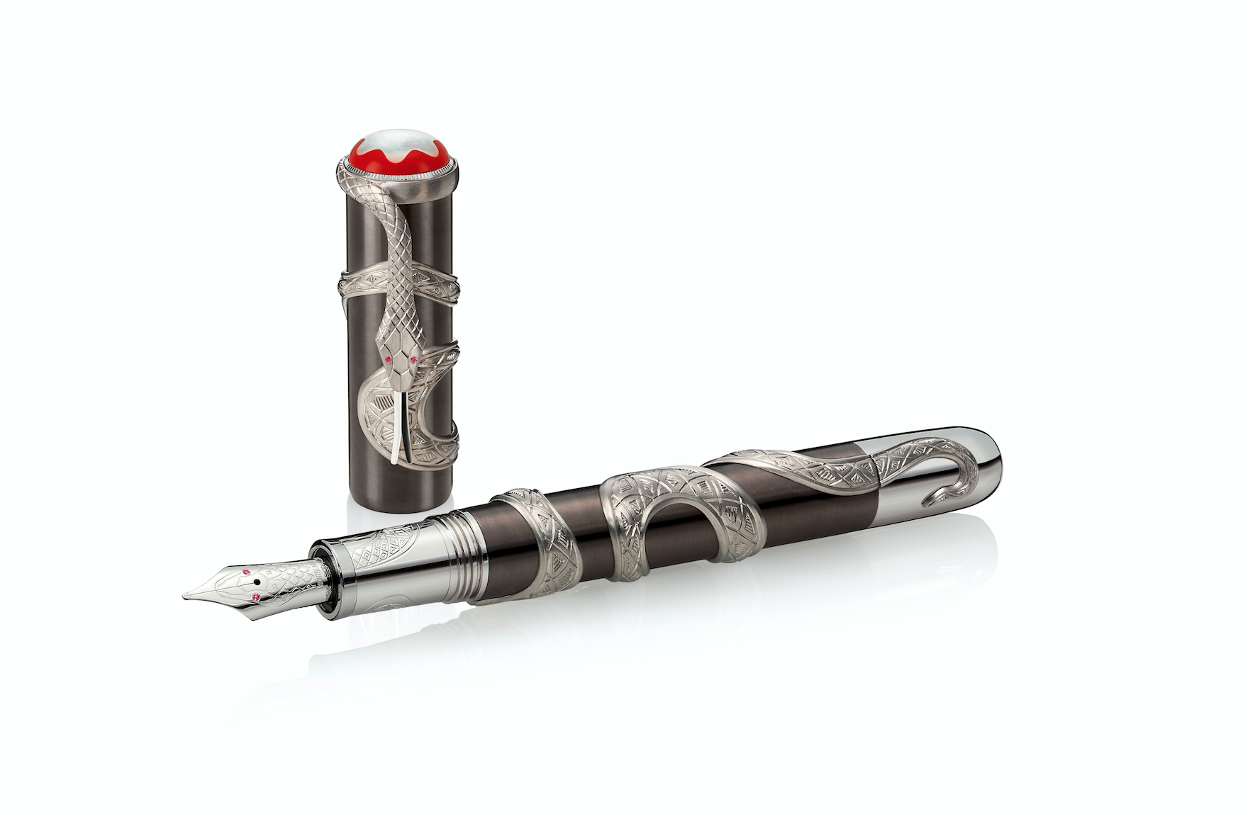 De cuerpo delgado, la construcción utiliza la resina preciosa con laca negra o color coral para las líneas que no poseen limitación, mientras que la más notable de la colección está fabricada en ebonita negra, un tipo de tratamiento de caucho ultra-resistente que ya se utilizada para desarrollar los primeros instrumentos de escritura de Montblanc. Coronadas gracias a una serpiente que posa ondulada por el capuchón, esta pluma –disponible en fuente, rollerball y ball pen–, se convertirá en un clásico que se atesorará por generaciones.