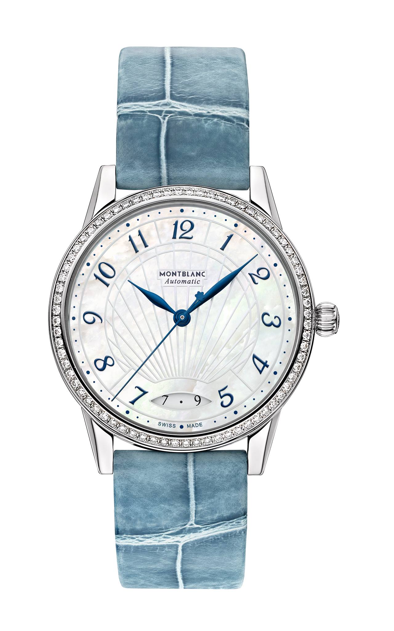 Desarrollados en caja de acero inoxidable, ofrecen un color azulado para el total de la propuesta. Además, la carátula está elaborada en madreperla y destaca gracias a un patrón guilloché en forma de conchas que combina a la perfección con los índices azules, minutería y 8 índices diamantes. Se puede completar la ecuación gracias a la adición de 72 minerales en el bisel, configuración exclusiva para las cajas de 34 mm de diámetro. Todos, y cada uno de ellos, indican la fecha a la altura de las 6 horas. Las nuevas correas azules presentan también un mecanismo de correa intercambiable.