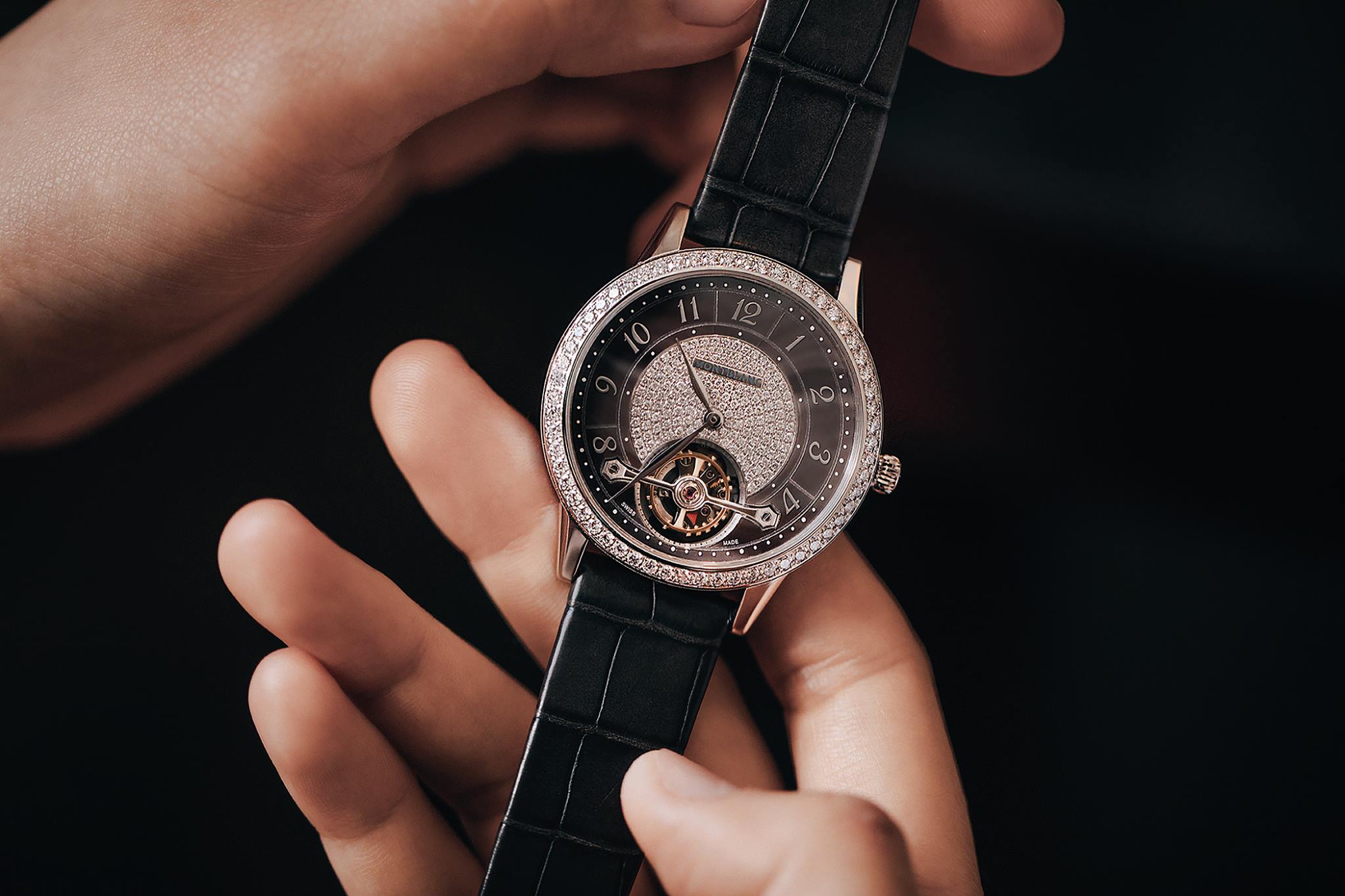De edición limitada a 28 ejemplares, se ofrece en dos colores distintos. Ambas ofrecen carátulas en madreperla, una en tono beige (caja de oro rosa) y la otra en color gris (caja de oro blanco). Cada una de las carátulas presenta un engaste de 146 diamantes talla brillante con pavé al centro, cuya función es jugar con la luz y resplandecer mediante un juego lleno de elegancia.