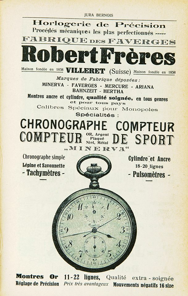 Fundada en 1858 en Villeret, en el Valle de Saint-Imier, Minerva ha sido una destacada especialista en la fabricación de relojes profesionales. Desde 1908, ha llevado a cabo con éxito nuevos desafíos tecnológicos, como la producción de relojes equipados con funciones de cronógrafo y cronómetros altamente precisos que miden intervalos cortos de tiempo. La Manufactura desarrolló desde 1911 cronómetros que podían medir un quinto de segundo, aumentando rápidamente a una décima de segundo. Con este espíritu innovador, en 1916, la Manufactura Minerva fue una de las primeras en producir un movimiento de alta frecuencia que pudiera medir una centésima de segundo, desarrollo que se perfeccionó técnicamente en 1936, poniendo a Minerva en el mapa como especialista en relojes profesionales y cronómetros.