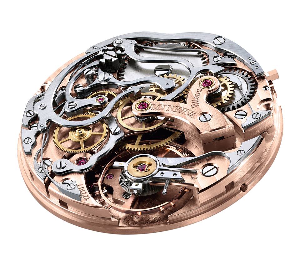 Al interior late el calibre cronógrafo monopulsante de Manufactura MB M16.29, que goza de una construcción con rueda de pilares y embrague horizontal para la fácil manipulación del crono. Posee autonomía por 50 horas y late a 2.5 Hz. Adicionalmente, cuenta con puentes de plata alemana enchapada en oro rosa, brazos facetados enchapados en oro y superficies pulidas con diamante. Este calibre es producto de los diestros relojeros y artesanos del atelier de Montblanc en Villeret.