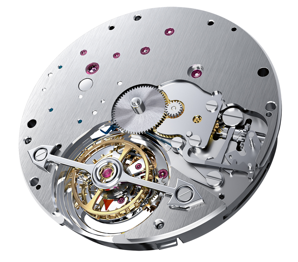 Un hito en la relojería contemoránea, ya que estamos acostumbrados a los torbellinos animados por un calibre de carga manual debido a las complicaciones que ofrecería un remonte automático. La respuesta es tan lógica como compleja: micro-rotor. El reto fue superado, y se colocó una masa oscilante de tan solo 4.5 mm de altura, consiguiendo que el perfil de la pieza –ya en su caja– alcance los 10.14 milímetros. Asimismo, la espiral al interior del barrilete dotará de 50 horas de autonomía al conjunto a una frecuencia de 3 Hz.