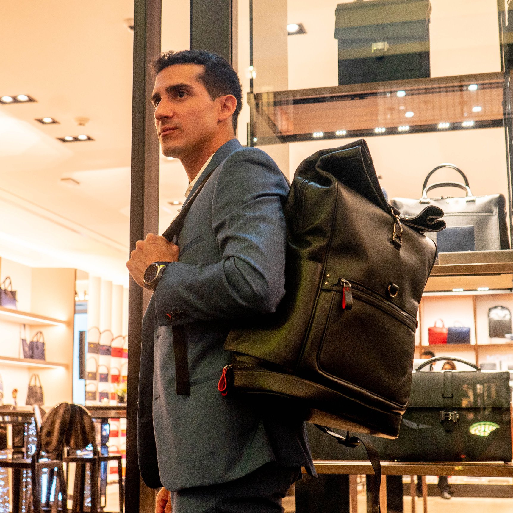 Un concepto de arquitectura estructurada con madera oscura inspirada en las manufacturas de la casa en donde se fabrica relojería, artículos de escritura, joyería y productos de piel fue diseñada por el diseñador Noé Duchaufour Lawrance, quien tuvo en mente un ambiente de estética pura y despejada que mezcla el negro, el blanco y la madera para transformar un ambiente en un mensaje icónico de la pasión de los artesanos de la Maison.