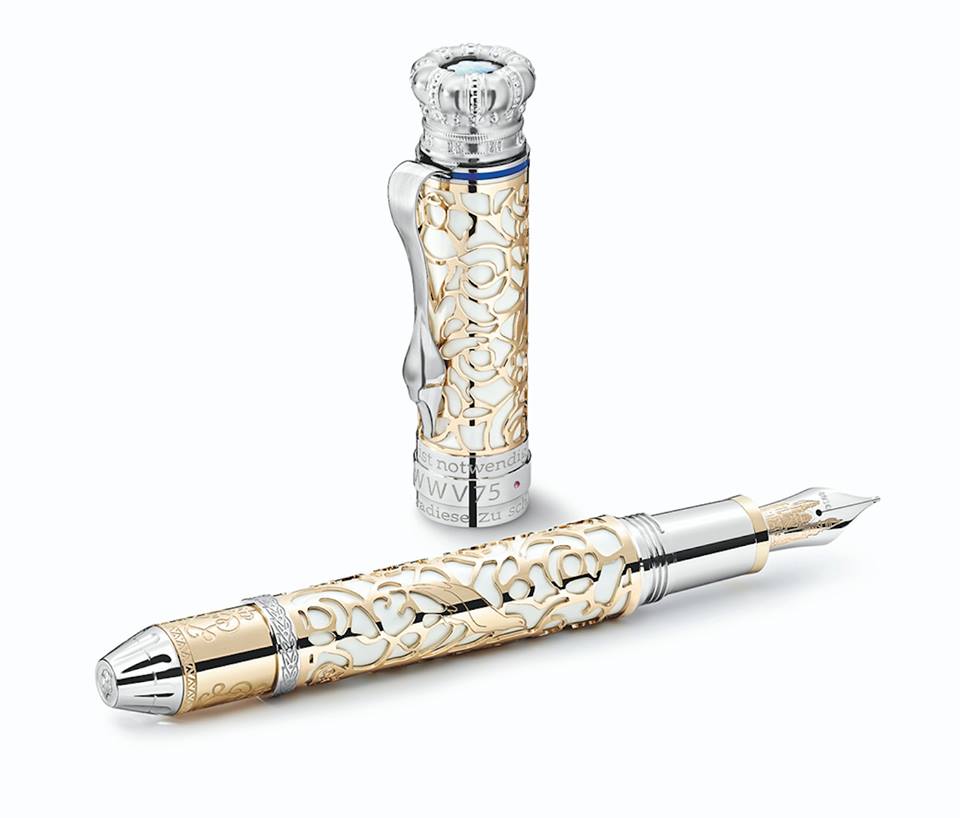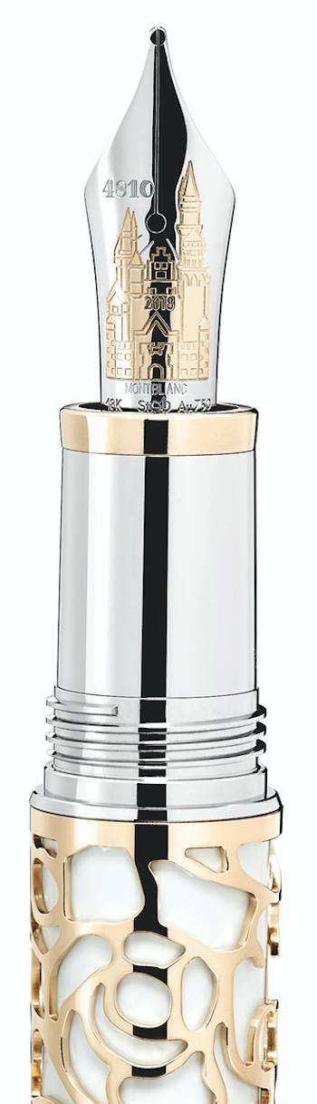 Como cada año, Montblanc rinde homenaje a grandes exponentes en el arte con instrumentos de escritura. En esta ocasión, la pluma con capuchón de laca traslúcida con un patrón guilloché en la parte inferior y un clip en plaqué oro champagne, tomó inspiración en la vida y en el legado cultural que nos dejó Ludwig II de Baviera.
