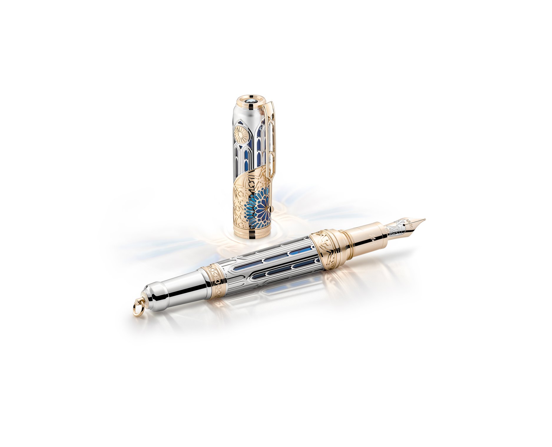 Es la primera ocasión que se presenta un instrumento a tal limitación dentro de la Edición Escritores Montblanc. Sólo 8 ejemplares cuyo valor proviene de la artesanía del esmaltado pliqué-a-jour, utilizada para crear el rosetón en diferentes tonos de rojo. Los motivos de la superficie están sostenidos por particiones de oro, a fin de simular vidrieras en miniatura.