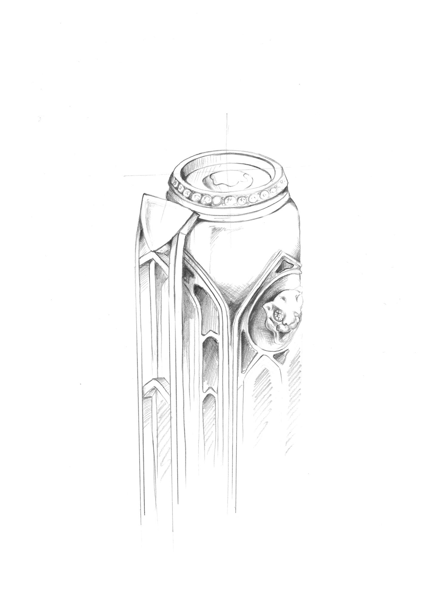 - Capuchón y cuerpo: su diseño recuerda a la arquitectura gótica de Notre Dame, con laca roja, traslúcida debajo, un color inspirado en el traje de prisión.