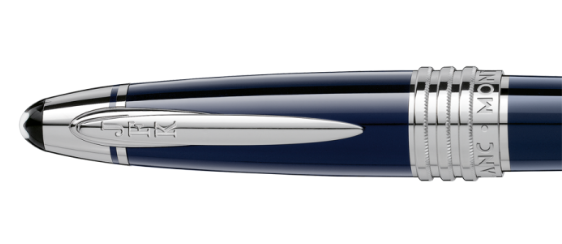 10.- John F. Kennedy. Un homenaje a uno de los políticos más reformistas de la historia, su diseño hace referencia simbólica a la vida de “JFK” (grabadas en el clip), mientras que su construcción en resina azul exhibe la época del ex-mandatario en la Marina de los Estados Unidos. Asimismo, sus proyectos espaciales son contenidos por el plumín artesanal, mismo que posee un módulo Lunar en referencia a la llegada del hombre a la Luna durante su mandato.