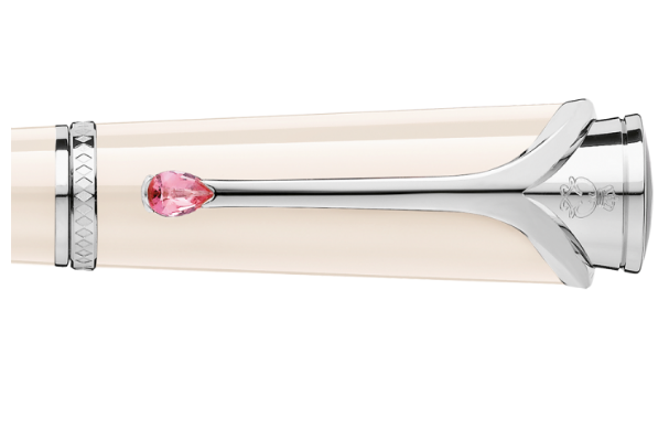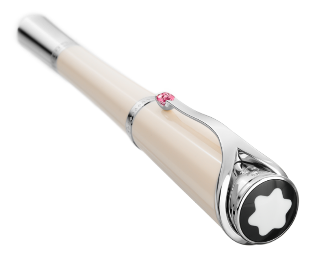 9.- Princesse Grace Marfil. Una de las personalidades más importantes del siglo XX, es también fuente de inspiración y motivo de homenaje para Montblanc y su novedosa colección: Princesse Grace de Monaco. El exquisito diseño de la edición especial, logra detener el tiempo a medida que se desliza por los diarios íntimos y personales adornándolos con un trazo femenino y muy especial. Un majestuoso escote –presente en el clip- resalta los extraordinarios detalles en la realización de dicho tributo. Las tres configuraciones: pluma fuente, roller y bolígrafo, han sido elaboradas en resina color marfil, la cual crea un contraste dramático con el topacio rosa situado en el clip.