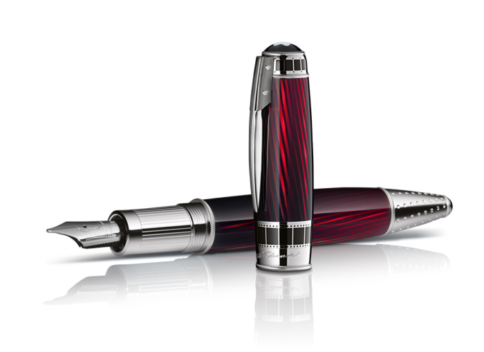 7.- Alfred Hitchcock. Considerado el inventor del thriller psicológico debido a la utilización de los múltiples ángulos de cámara y a las avanzadas técnicas de edición -presentes en sus películas-, mismas que le permitieron entrar en la mente del espectador para conducirlo al límite de la ansiedad y el pánico. Dos de las grandes obras del cineasta británico se pueden observar en los detalles de la edición especial de 3,000 piezas: el clip –fabricado en plata Sterling 925- representa el cuchillo con el cual se realizó una de las escenas más impactantes en la historia del cine: el asesinato en la bañera de Marion Crane, personaje principal de “Psicosis” (1960). De igual manera la escalera interminable de “Vértigo”, ha sido fundamental en la inspiración para el diseño del cuerpo de la pluma. El “efecto vértigo” de Hitchcock consistía en la lucha interna que de forma frenética experimenta Scottie Ferguson al tratar de vencer la sensación física de mareo y desvanecimiento durante el final del largometraje, considerado por la crítica la obra maestra del londinense. Montblanc ha creado una edición en oro blanco limitada a 80 piezas. El dramático elemento de tensión desarrollado en forma magistral por Hitchcock, parece renacer en cada uno de los detalles del homenaje dedicado a uno de los cineastas más influyentes de todos los tiempos. Un rollo de película de cine aparece en el cono de la estilográfica haciendo referencia al propósito final de Hitchcock, que consistía en dominar la atención del público y dirigirlo hacia donde él quería que fuera. De igual modo una soga -fabricada en el mismo metal- envuelve la tapa de la pluma fuente, representando así el arma de la primera cinta a color del director.