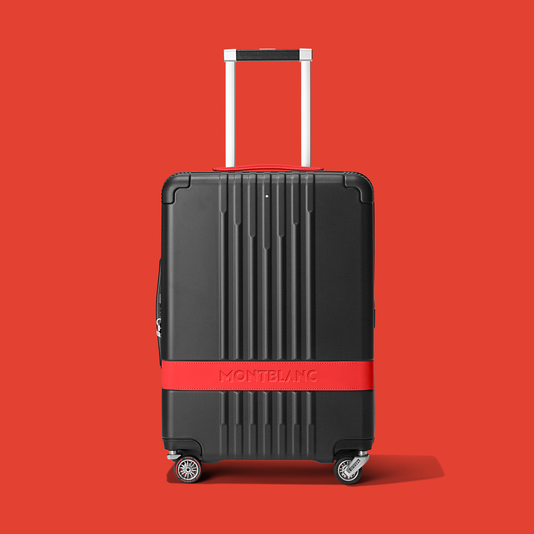 Desarrollada con la máxima tecnología, esta maleta está fabricada en policarbonato negro con vivos de cuero encauchado en rojo. Las ruedas poseen un sistema de rodamiento de esferas de alto rendimiento para que puedan deslizarse de mejor manera. Son desarrolladas en conjunto por los ingenieros de Pirelli y los diseñadores de Montblanc.