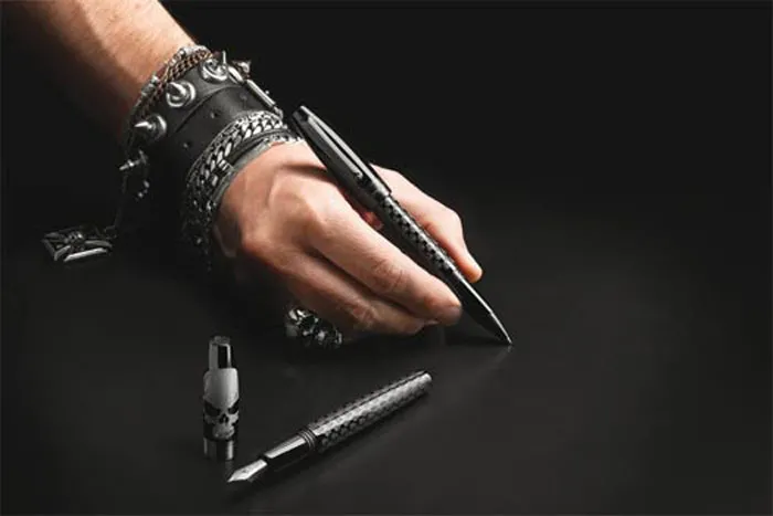 Montegrappa conoce el sentido del ciclo de vida, ya lo demuestran sus más de 100 años de existencia, y fiel a la tradición de realizar útiles de la más alta calidad, nos presenta una edición que rinde homenaje a la muerte de una manera verdaderamente atemporal, es decir, no tiene que esperar a que sea día de brujas para utilizar esta colección denominada Fortuna Skull, incluso puede ser un ferviente admirador del trash metal y utilizarla con regularidad. No obstante el Día de Muertos, celebrado cada 2 de noviembre, también resulta una oportunidad inigualable para adquirir o regalar un producto como éste, que ha sido cubierta de negro mediante un tratamiento a lo largo y ancho de la pluma, el capuchón se encuentra grabado con una calavera, mientras que el clip exhibe a detalle una réplica de diente cadavérico.
