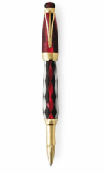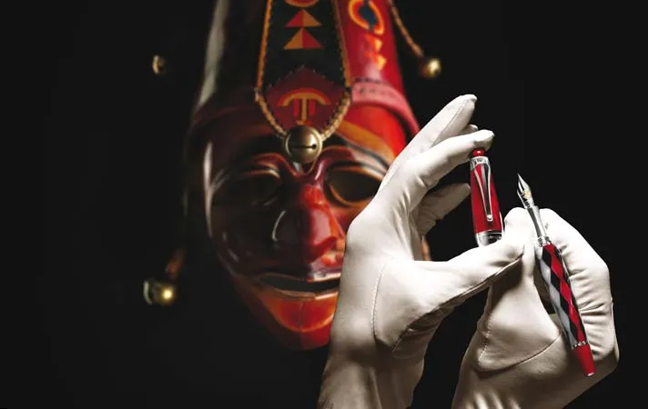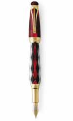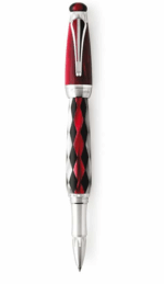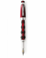 Con la vista puesta en el espíritu del jugador del mismo nombre que se conmemora, el diseño de la pluma Rigoletto recuerda inmediatamente la vestimenta del bufón de la corte, un patrón de rombos de arlequín en color rojo, blanco y negro. El cuerpo y la tapa en rojo están hechas de resina, el propio cuerpo requirió el uso de esta técnica para crear su efecto de mosaico. Todos los adornos y detalles son de plata o de oro macizo, dependiendo del modelo.