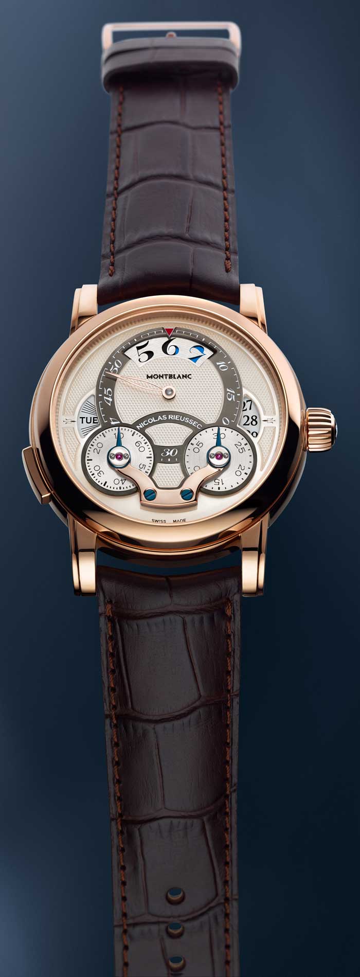 Desde el primer momento en el que los diseñadores de Montblanc decidieron rendir un homenaje al inventor de cronógrafo, Nicolas Mathieu Rieussec, determinaron que la indicación del tiempo debería de apegarse al medidor de tiempos cortos de 1822. Dicho aparejo mostraba el paso de los segundos a través de un disco giratorio a una revolución completa por minuto.