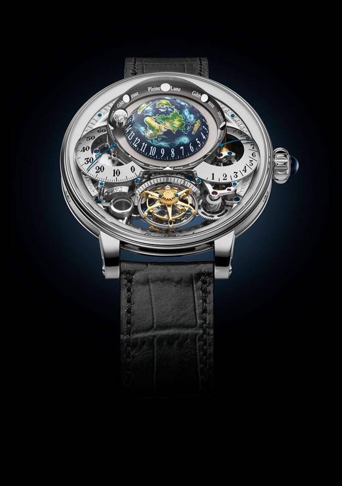 A manera de explicación, se trata de un aparato desarrollado para ejemplificar los tres principales astros que nos rigen: el Sol, la Tierra y la Luna, y su interacción el uno con el otro. Sin embargo, la manera en la que este Bovet lo muestra básicamente es hermosa y digna de aplauso. Todo ello gracias a la inmensa proporción de la Tierra, que deja al torbellino hacer las de Sol y a una Luna girar alrededor de nuestro planeta. Todo ello, por supuesto, en la medida y proporción real a la que aceptamos.