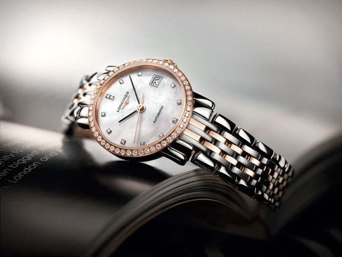 Finalmente, la línea Conquest nos entrega una versión sumamente vintage que vincula seis décadas de historia, y lleva por nombre Conquest Heritage 1954 -2014, pero antes de dar paso a las imágenes, déjeme compartirles que el mercado femenino es sumamente especial para Longines, por lo que se ha propuesto una nueva línea Elegant al acento femenino de la marca, que juega con los diamantes, el acero y el duo-tono para el brazalete, caja y bisel.