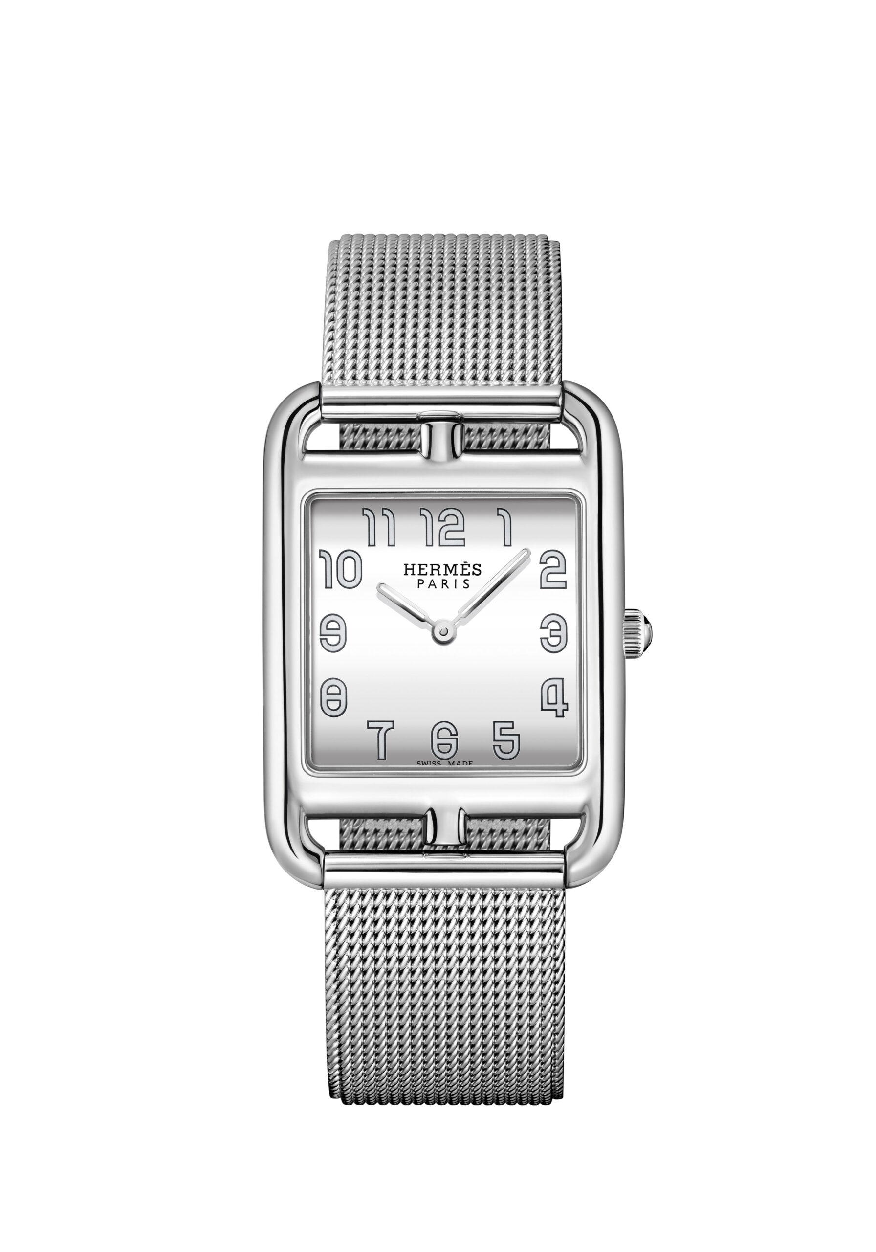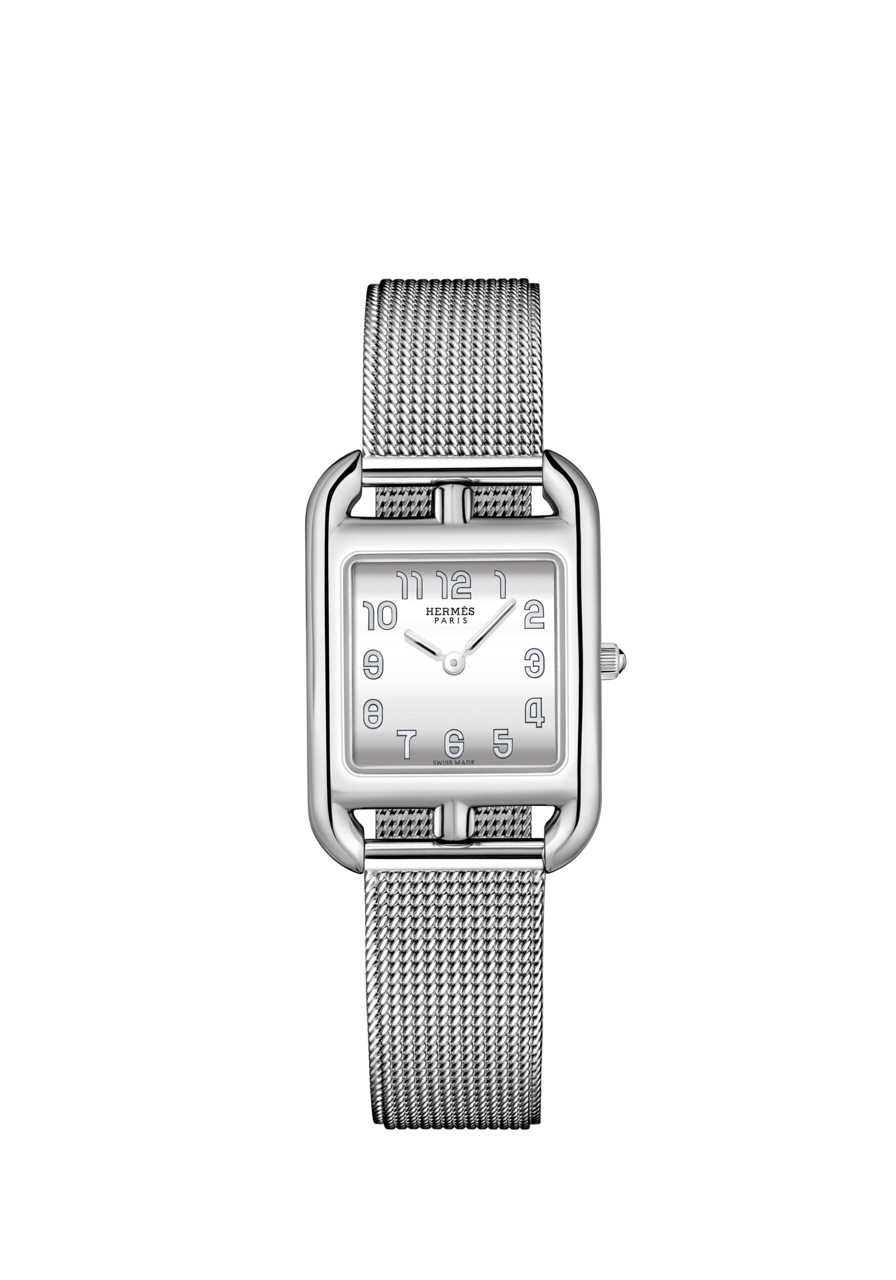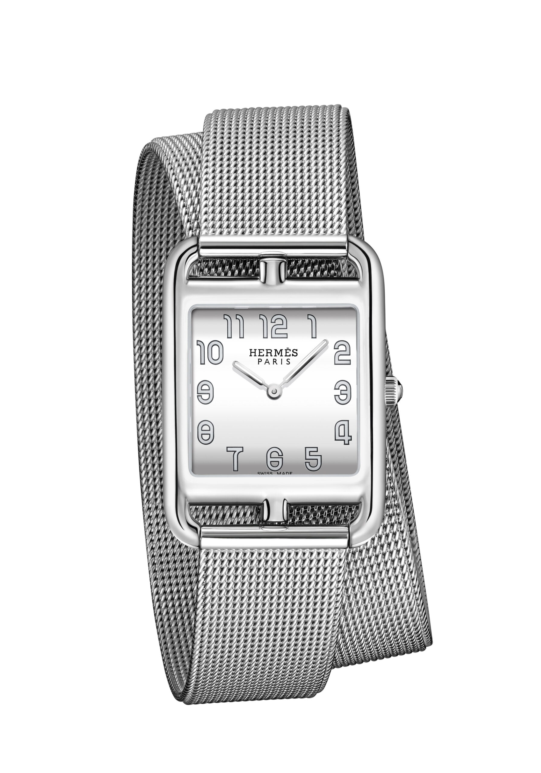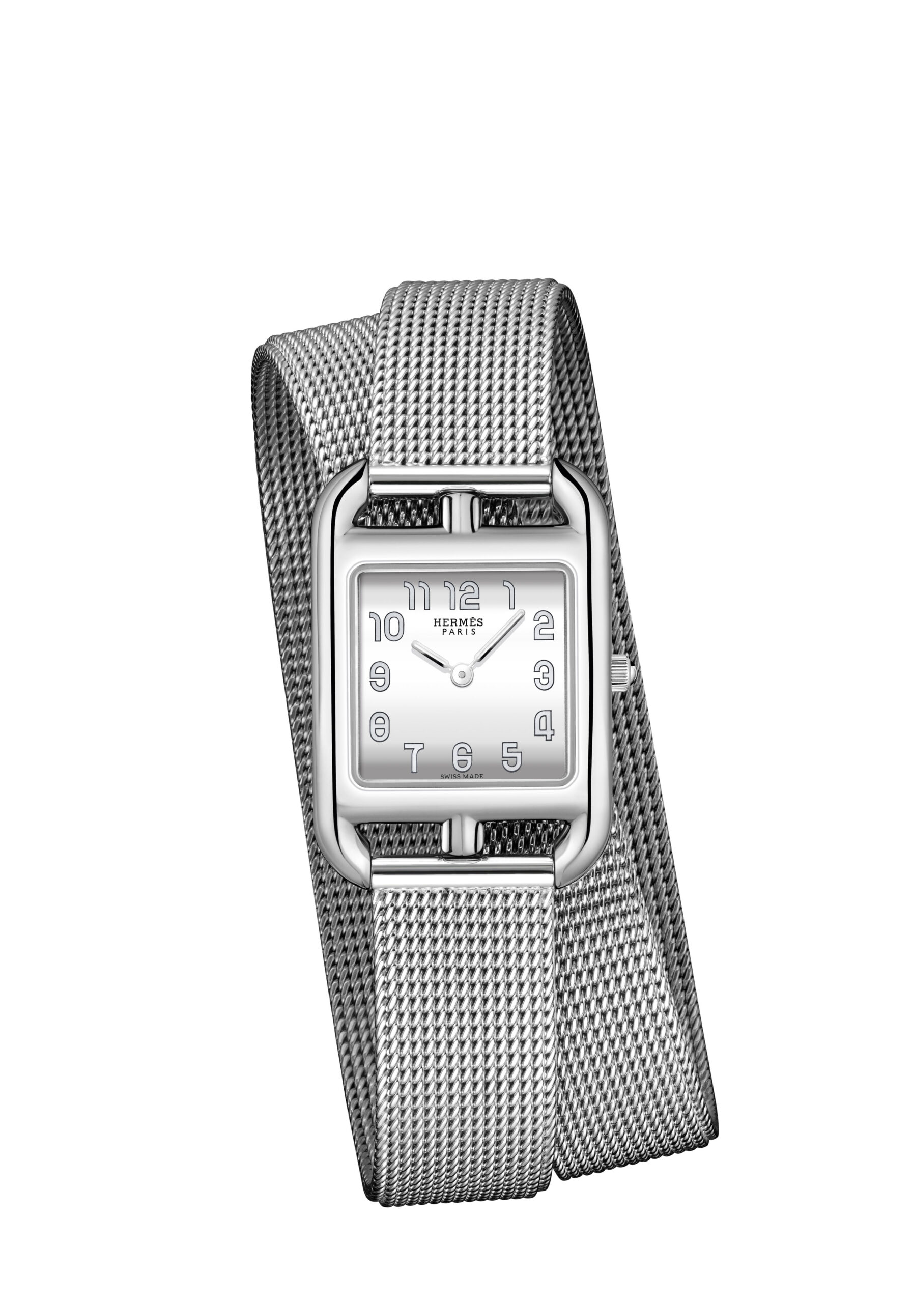 Cape Cod presenta nuevas versiones. La primera lleva una carátula rodiada, pulida para darle un efecto espejo, y cubierta con una preciosa laca traslúcida. Está disponible en dos tamaños, pequeño y grande, y se completa con un brazalete de malla milanesa de vuelta doble o sencilla.