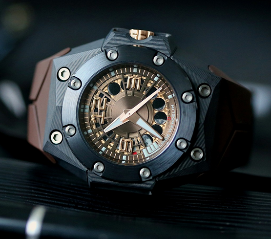 Se trata del primer reloj realizado en carbón de alta tecnología por parte de Linde Werdelin, mientras que al interior late un movimiento que late a 4 Hz durante al menos 44 horas, de hechura suiza de carga automática con sistema de indicación de fase de Luna patentado. Asimismo, su caja se extiende hasta los 44 mm de estética en multi capas, mientras que el color de la carátula esqueletada brinda una tridimensionalidad que juega a favor por la mecánica de la pieza, y que estará sujeta por una correa de caucho natural intercambiable –¿Su hermeticidad?– 300 metros, por lo que se complementará de manera excepcional con el estilo de vida del buceador o el aficionado al submarinismo.