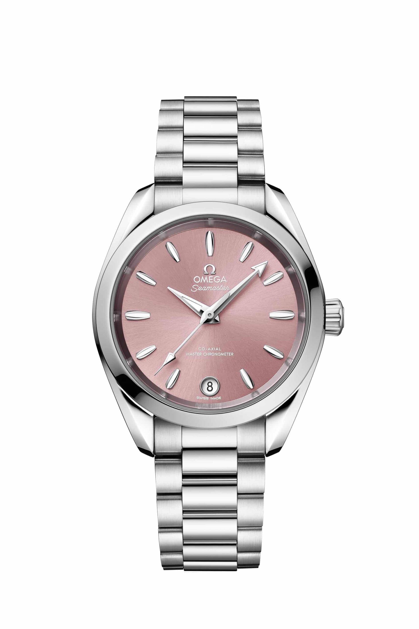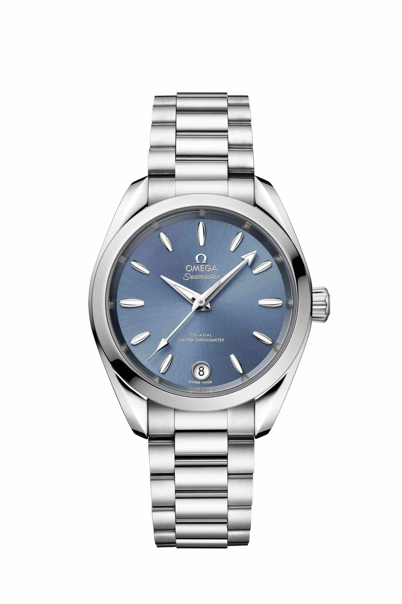 Parte del atractivo de la colección Omega Aqua Terra 150M son sus dimensiones. Las nuevas variantes, todas con caja y brazalete en acero noble, miden 34 o 38 mm de diámetro, y 11.88 o 12.26 mm de grosor, respectivamente. Es un tamaño adecuado para un reloj que se adapta a una vestimenta casual o formal, dirigido tanto a mujeres como hombres. En cualquiera de sus configuraciones es ideal de para el uso diario.