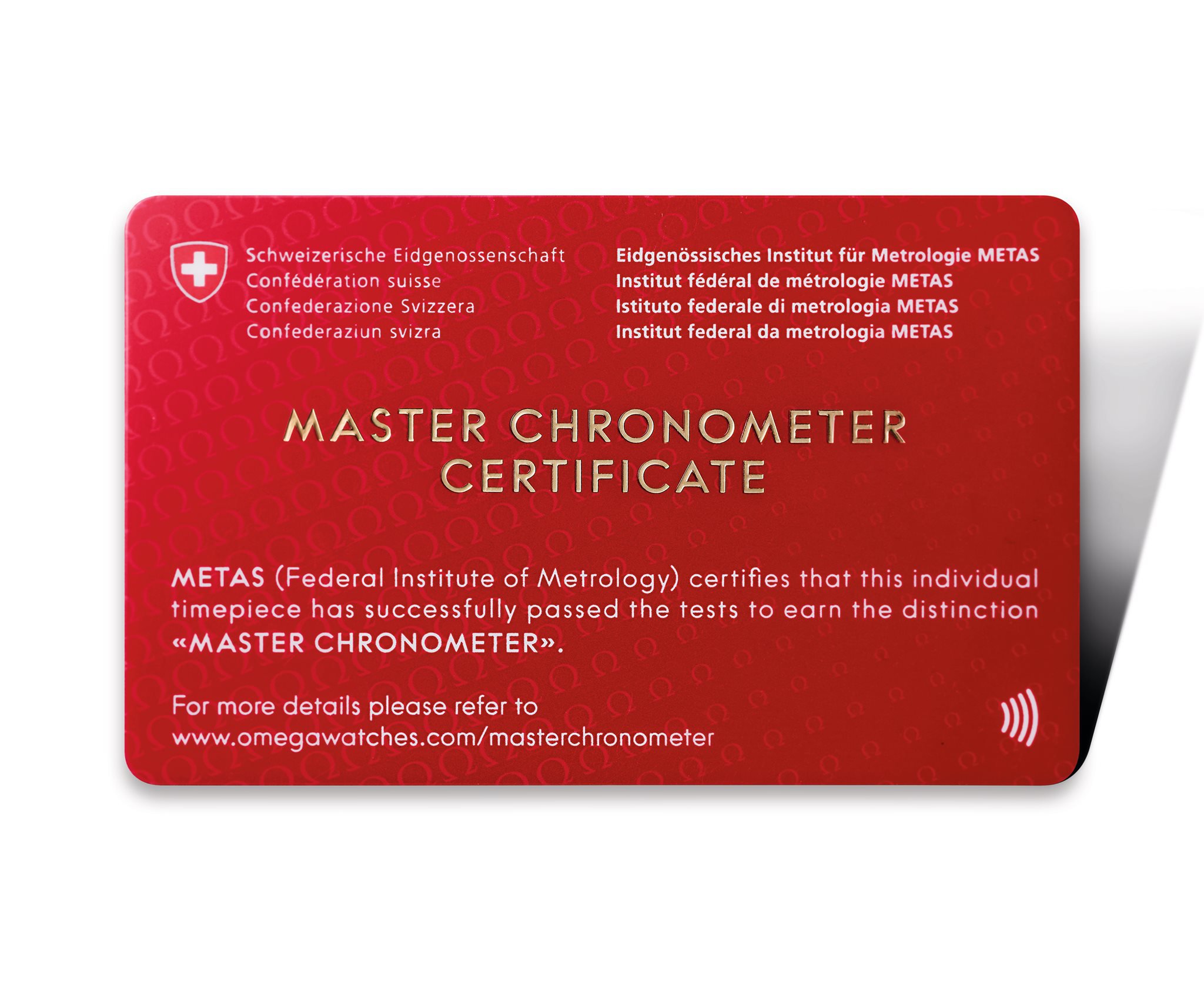 En el fondo de la caja encontrarás el famoso medallón del Observatorio de la Constelación, que se ha creado en acero inoxidable y en un cristal de zafiro resistente a los arañazos. El reloj se presenta en una correa de cuero negro brillante y está impulsado por el cronómetro maestro coaxial OMEGA Calibre 8922. El movimiento y el reloj completo han sido certificados oficialmente por el Instituto Federal de Metrología de Suiza (METAS).